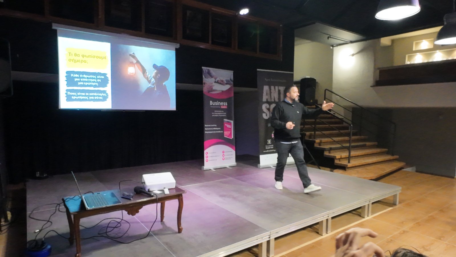 Στο πλαίσιο της εκδήλωσης, τοποθετήθηκε ο συγγραφέας, αναφέροντας χαρακτηριστικά: «Η προσέγγιση μου πάνω στο θέμα της εκπαίδευσης είναι πάρα πολύ απλή. Κυνηγάω τον ρεαλισμό και την επαφή με την πραγματικότητα, είτε μιλάμε για μικρομεσαίους, είτε για ανθρώπους που αναζητούν την καλύτερη εκδοχή του εαυτού τους. Πρέπει τα πόδια μας να πατούν πάντοτε στη γη, καθώς το σύμπαν δε θα συνωμοτήσει ποτέ για την ατομική επιτυχία… Αυτό είναι το κομμάτι με το οποίο ασχολείται το ANTISOFT, το δεύτερο βιβλίο μου, το οποίο είναι επί της ουσίας ένα ξύπνημα για το σύγχρονο άνθρωπο την εποχή που ζούμε. Έχουμε πρόσβαση σε δευτερεύοντα πράγματα, τα οποία μας κάνουν να χάνουμε τον δρόμο. Το σύγγραμμα ευελπιστεί να επαναφέρει το μπερδεμένο σημερινό άνθρωπο στην πραγματικότητα, για όσα αφορούν την προσωπική εξέλιξη και την αυτοβελτίωση».