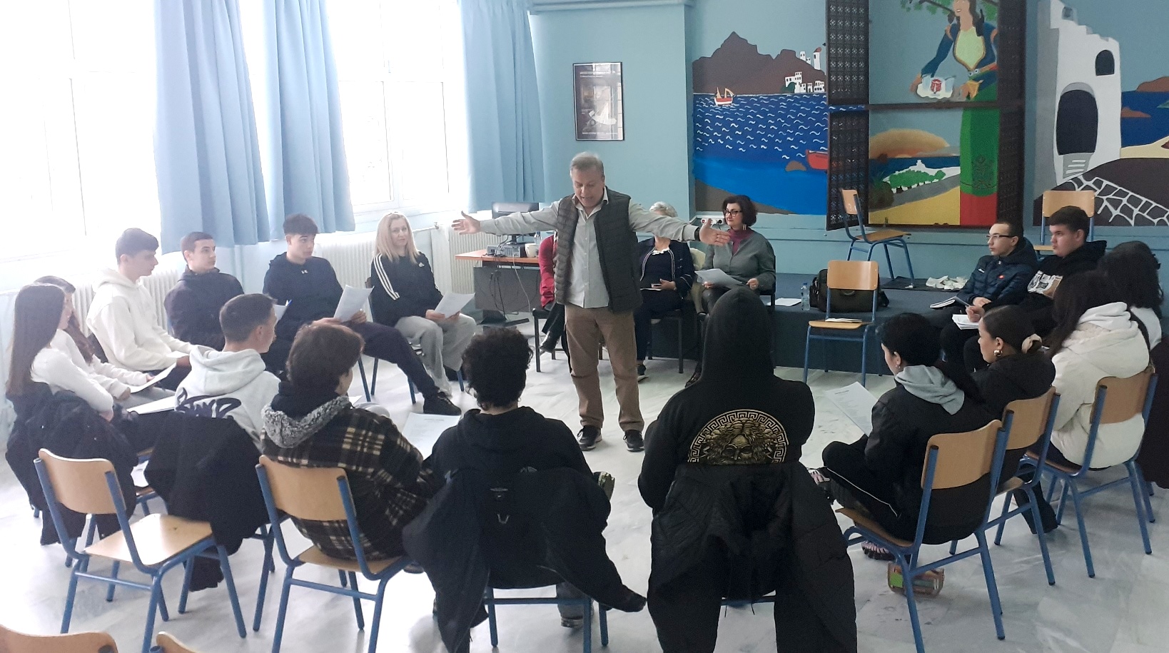Μαθητές και μαθήτριες υποδέχτηκαν τον ποιητή «Ρέκτη» και ταξίδεψαν μαζί του σε ιδέες και συναισθήματα, απολαμβάνοντας μια ευχάριστη και γόνιμη εμπειρία, ενώ συνταξιδιώτες ήταν η συγγραφέας εφηβικών βιβλίων Ευδοκία Ποιμενίδου και η Γεωργία Γιάγκου η οποία απήγγειλε γιαπωνέζικα χαϊκού.