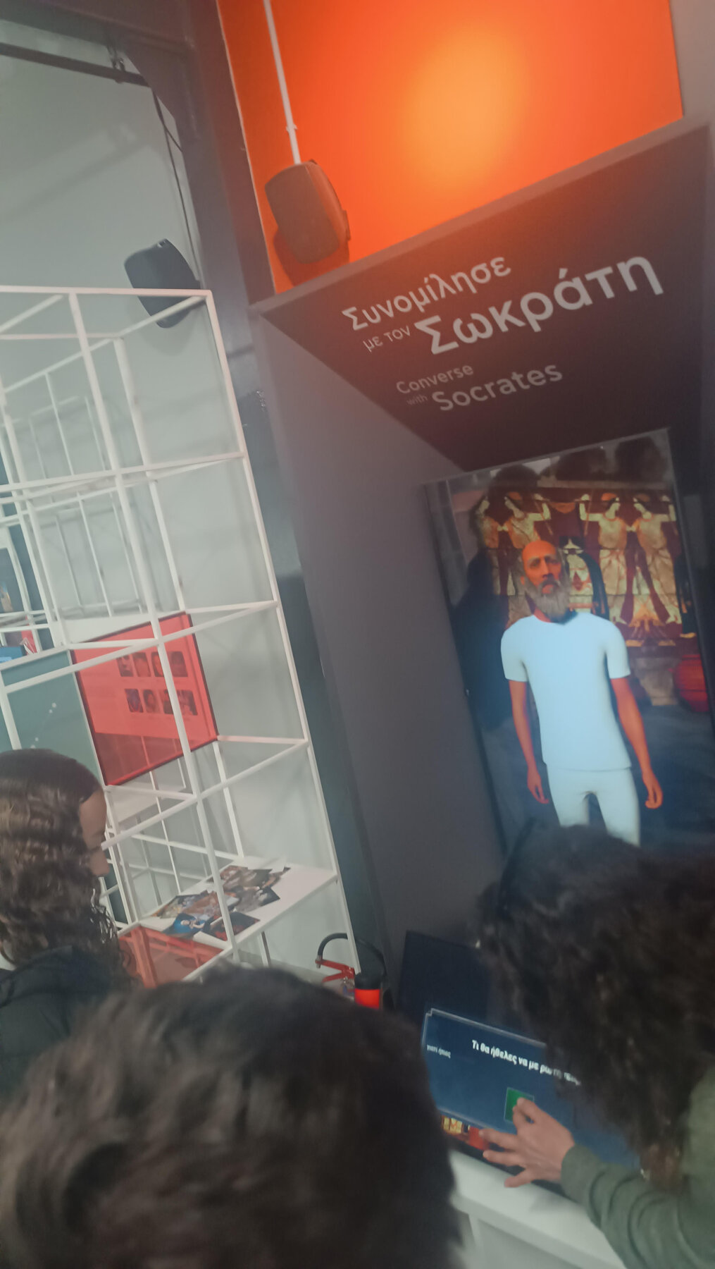 Highlight της επίσκεψης ήταν η διαδραστική εμπειρία με το ψηφιακό μοντέλο του Σωκράτη. Οι μαθητές «συνάντησαν» τον μεγάλο φιλόσοφο σε ψηφιακή μορφή, του έθεσαν ερωτήματα και δέχθηκαν προκλήσεις που τους ανάγκασαν να σκεφτούν βαθύτερα, συνδυάζοντας την αρχαία ελληνική σκέψη με την τεχνολογία του 21ου αιώνα.