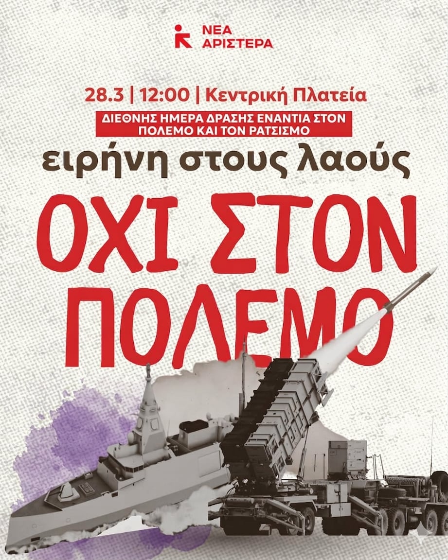 Η Νέα Αριστερά Λάρισας καλεί στη συγκέντρωση στις 28 Μαρτίου στην Κεντρική πλατεία στις 12:00.