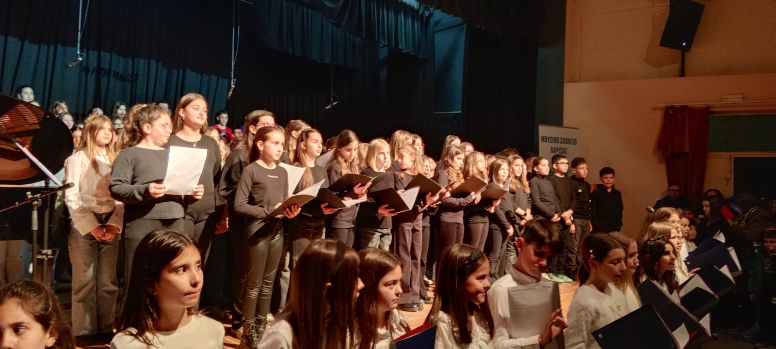 Το Σάββατο 21 Μαρτίου 2026, Παγκόσμια Ημέρα ποίησης, στις 7.00 μ.μ. πραγματοποιήθηκε στο αμφιθέατρο του Μουσικού σχολείου Λάρισας εκδήλωση με θέμα: “Όταν η ποίηση γίνεται τραγούδι”. Παρουσιάστηκαν έργα από τη συλλογή του κορυφαίου συνθέτη μας Μίκη Θεοδωράκη, “40 Τραγούδια για παιδάκια και παιδιά“, ενορχηστρωμένα από τον σπουδαίο μαέστρο Δ. Καρβούνη, ο οποίος και τίμησε με την παρουσία του την εκδήλωση.