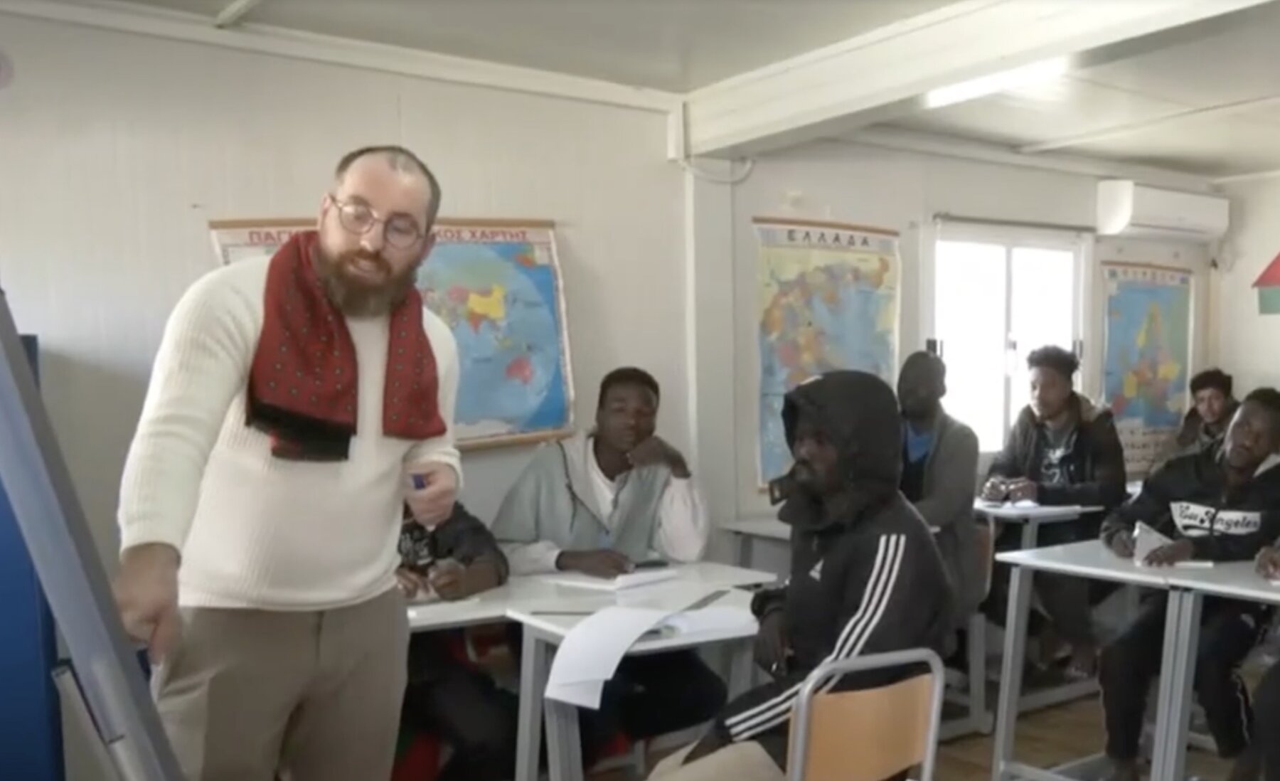 Ο Άγγελος είναι φιλόλογος, ο δικός τους …άγγελος. Ο άνθρωπος που κάθε μέρα πηγαίνει στη δομή με ένα στόχο: να χαρίσει στους μετανάστες γνώσεις, εφόδια που θα κρατήσουν για πάντα: «Τους διδάσκουμε όσο καλύτερα μπορούμε, δεδομένων των συνθηκών, και το θεωρώ μια αξέχαστη εμπειρία και ένα λειτούργημα. Είναι δύσκολη και η ελληνική γλώσσα και το ότι πολλοί, ας πούμε, δεν γνωρίζουν τα αγγλικά. Δεν έχουμε ένα ενδιάμεσο”, αναφέρει ο καθηγητής. Οι περισσότεροι Σουδανοί που μετέχουν στο πρόγραμμα διακινδύνευσαν τη ζωή τους με σαπιοκάραβα στη θάλασσα προκειμένου να έρθουν στην Ελλάδα.