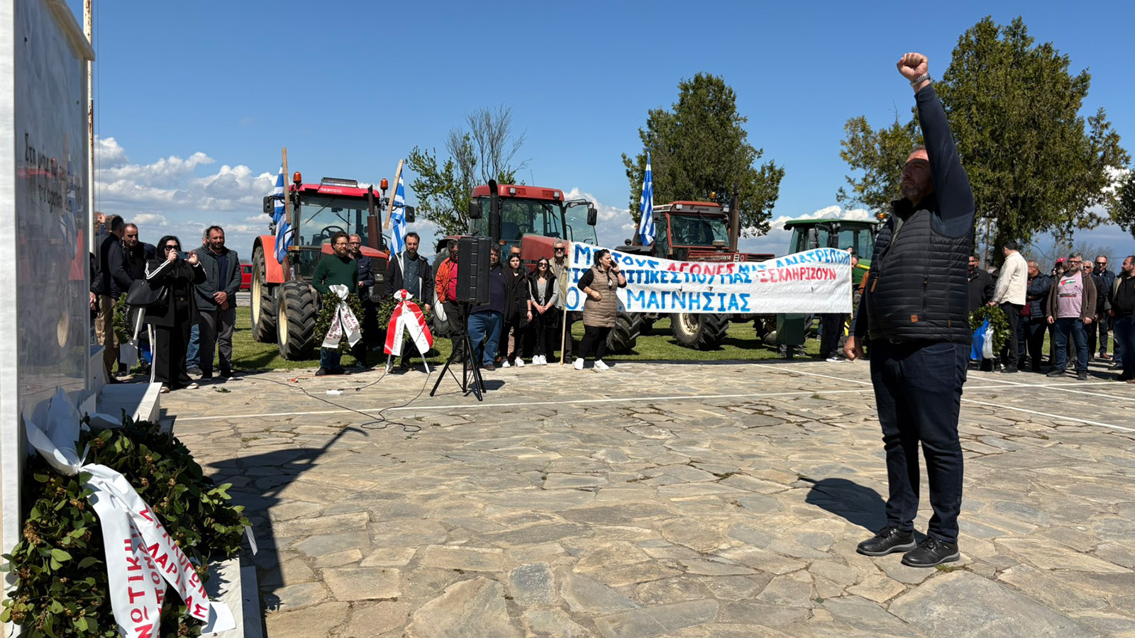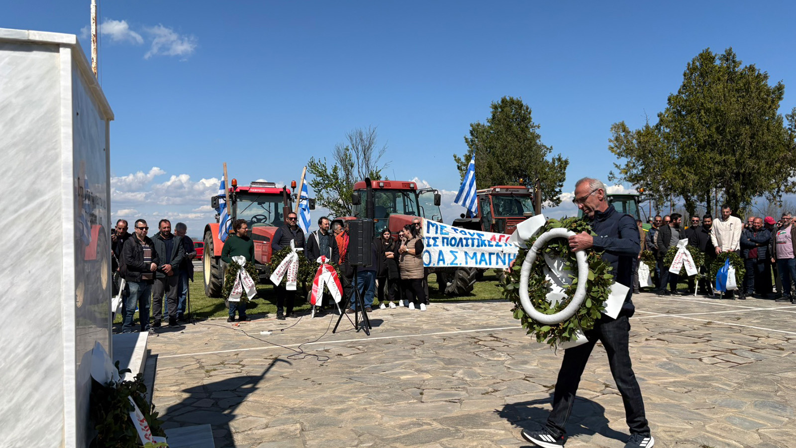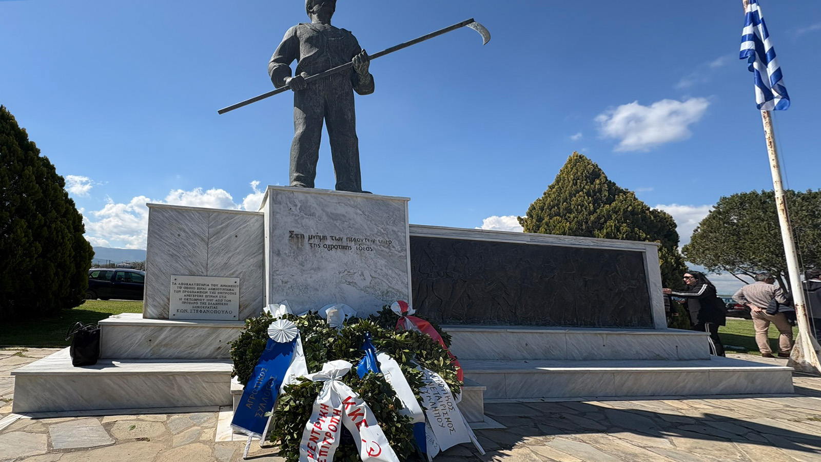 Οι ίδιοι βρέθηκαν σήμερα το μεσημέρι στο μνημείο του αγρότη για να τιμήσουν την 116η επέτειο από την εξέγερση των κολίγων της Θεσσαλίας που έβαψαν με το αίμα τους τον αγώνα για την απαλλοτρίωση των τσιφλικιών του κάμπου.