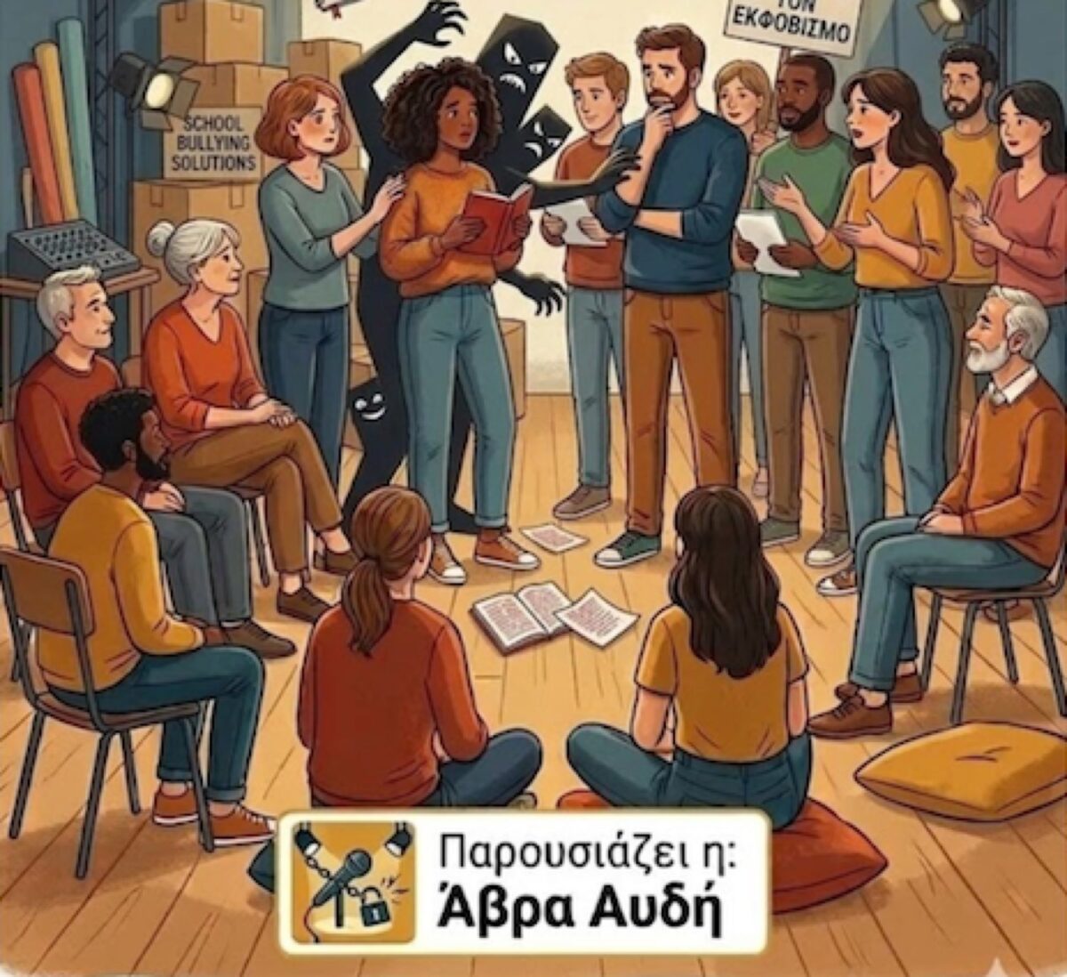 Το εργαστήριο σχεδιάστηκε από την Άβρα Αυδή και τη Μελίνα Χατζηγεωργίου και εφαρμόστηκε στο πλαίσιο του προγράμματος «Η τέχνη αντίδοτο στη Βία» που οργανώθηκε από το Πανελλήνιο Δίκτυο για το Θέατρο στην Εκπαίδευση το σχολικό έτος 2025-2026. Αξιοποιείται η μέθοδος του εκπαιδευτικού δράματος (Drama in Education) και προσφέρεται η δυνατότητα στους συμμετέχοντες να βιώσουν τον λεκτικό εκφοβισμό και τη σωματική βία μέσα από διάφορες οπτικές γωνίες.