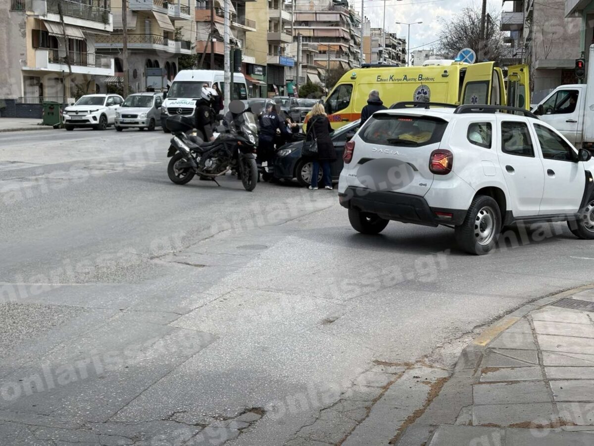 Τροχαίο ατύχημα σημειώθηκε σήμερα το μεσημέρι της Τρίτης στη Λάρισα και ειδικότερα λίγο μετά τις 1.30 μ.μ. στη συμβολή των οδών Ηρώων Πολυτεχνείου και Καρδίτσης.