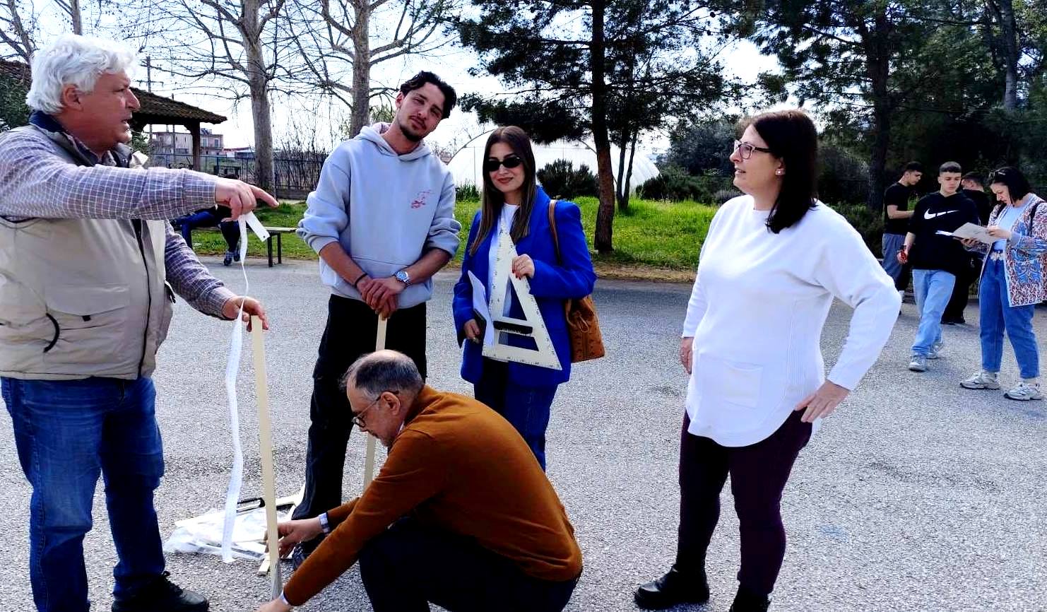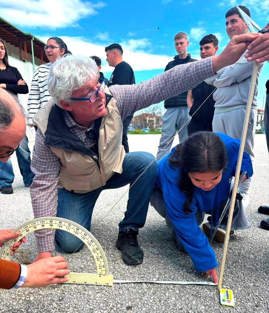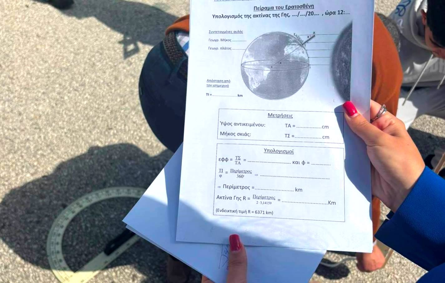 Με τη χρήση απλών οργάνων μέτρησης, οι μαθητές παρατήρησαν τη σκιά ενός κάθετου αντικειμένου, τη στιγμή της μεσημβρίας και κατέγραψαν τις απαραίτητες μετρήσεις. Μέσα από τη διαδικασία αυτή, υπολόγισαν τη γωνία που σχηματίζει η σκιά με το έδαφος και, ακολουθώντας τη μέθοδο του αρχαίου Έλληνα μαθηματικού Ερατοσθένη, κατανόησαν πώς είναι δυνατόν να εκτιμηθεί η περιφέρεια της Γης, με βάση γεωμετρικούς συλλογισμούς.