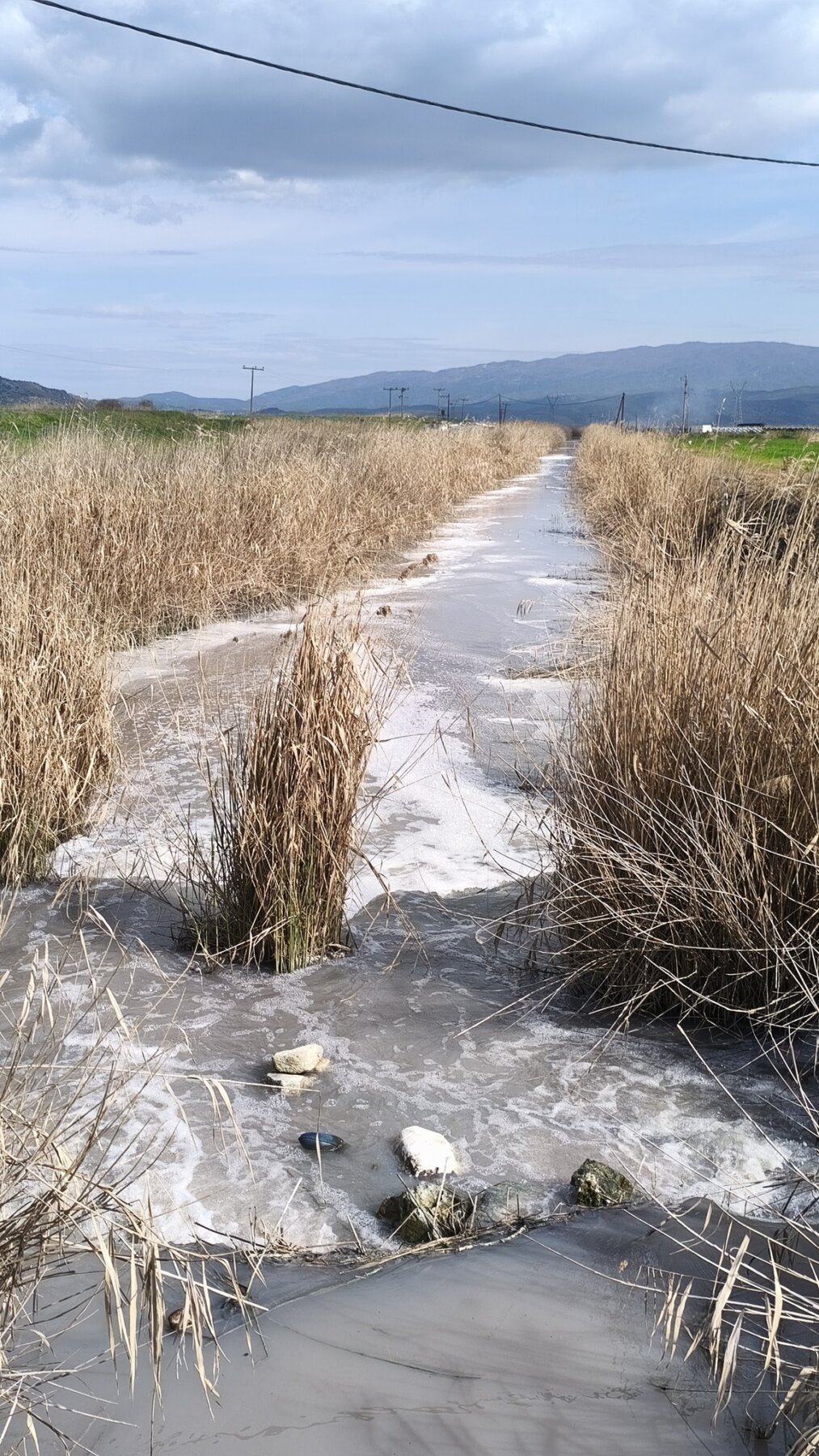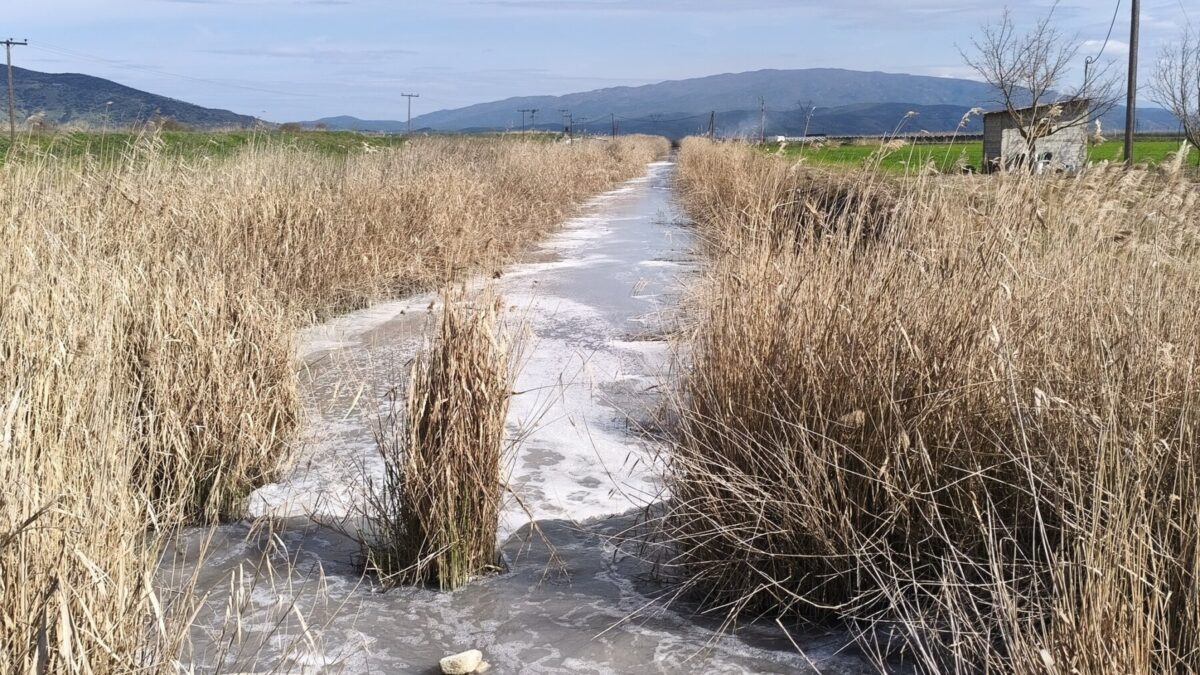 Ανησυχία για αρδευτικό κανάλι έξω από τη Λάρισα: Το νερό αφρίζει ενώ έχει «γαλακτώδη» όψη (φωτό)