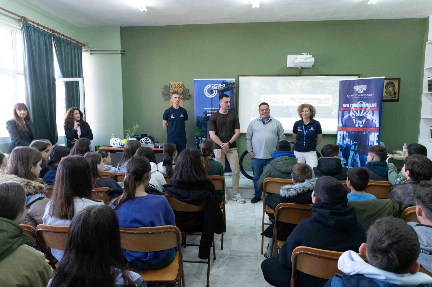 Την ευκαιρία να ενημερωθούν για την ασφαλή ποδηλατική συμπεριφορά και μετακίνηση, αλλά και να πάρουν μια… γεύση από αγωνιστικό ποδηλατικό γύρο, μέσω προσομοίωσης, είχαν οι μαθήτριες και μαθητές της Α΄ τάξης του 7ου και 11ου Γυμνασίου Λάρισας, στο πλαίσιο εκπαιδευτικής δράσης για την υποδοχή του ΔΕΗ Tour of Hellas 2026, στις 7 Μαΐου, στη Λάρισα.