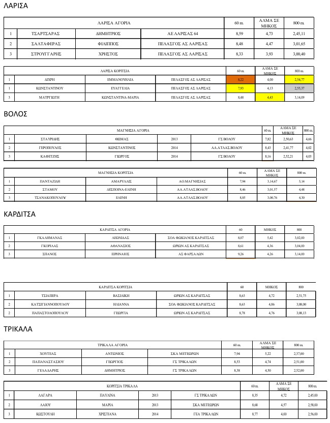 Τα αποτελέσματα για τους 3 πρώτους αθλητές είναι τα ακόλουθα ενώ τα συνολικά αποτελέσματα μπορείτε να δείτε στην ιστοσελίδα του ΣΕΓΑΣ Θεσσαλίας.