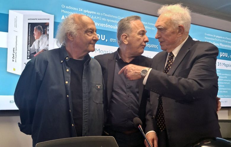 Η εκδήλωση ολοκληρώθηκε με «στενό μαρκάρισμα» των παρευρισκόμενων στον Αλέξανδρο Μανιατόπουλο, ο οποίος λίγο πριν κλείσει την 9η δεκαετία της ζωής, ακούραστος και με πηγαίο χιούμορ απαντούσε σε όλους και για όλα, υπογράφοντας ταυτόχρονα αφιερώσεις στους κατόχους του ογκώδους βιβλίου του, που εκτός των εκδόσεων «24 γράμματα», διατίθεται και στα βιβλιοπωλεία.
