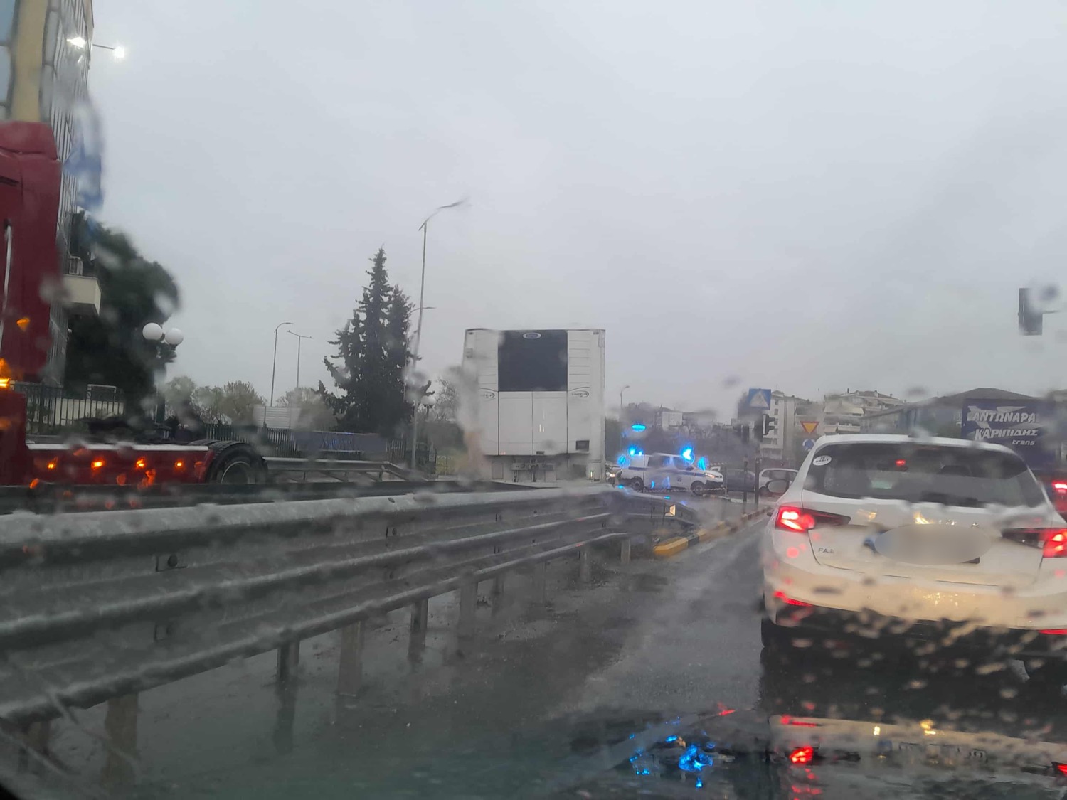 Κυκλοφοριακό κομφούζιο και εν μέσω βροχής σήμερα το πρωί της Πέμπτης στη Λάρισα και ειδικότερα στον περιφερειακό στο ύψος της ΔΕΥΑΛ.