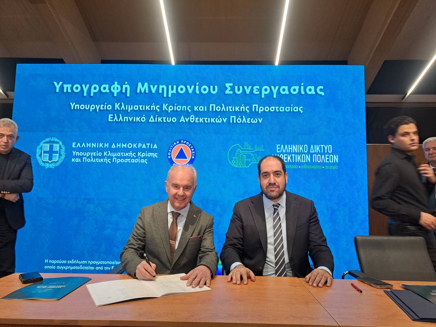 Στο Ωδείο Αθηνών πραγματοποιήθηκε η υπογραφή Μνημονίου Συνεργασίας μεταξύ του Δημάρχου Τεμπών, κ. Γιώργου Μανώλη, και του Υπουργού Κλιματικής Κρίσης και Πολιτικής Προστασίας, κ. Γιάννη Κεφαλογιάννη, στο πλαίσιο της συνεργασίας με το Ελληνικό Δίκτυο Ανθεκτικών Πόλεων.