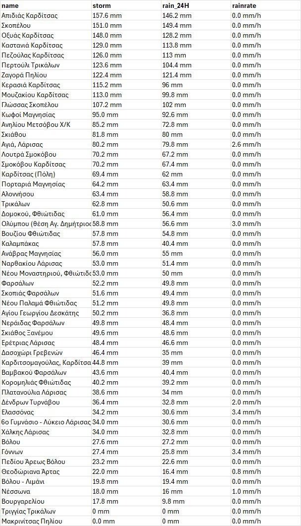 Δείτε τη λίστα με τα εκατοστά βροχής που έπεσαν ανά περιοχή: