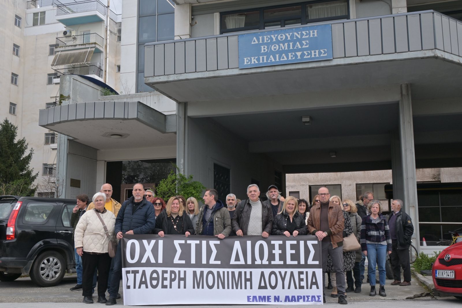 Μετά την παραπομπή εκπαιδευτικών από την Διεύθυνση Δευτεροβάθμιας Εκπαίδευσης Λάρισας στο Πειθαρχικό Συμβούλιο για την συμμετοχή στη νόμιμα προκηρυγμένη από την ΑΔΕΔΥ απεργία – αποχή, η ΕΛΜΕ Λάρισας προχώρησε σε κινητοποίηση σήμερα το μεσημέρι της Παρασκευής έξω από την ΔΔΕ με την παρουσία πολλών εκπαιδευτικών με σκοπό τη στήριξη των συναδέλφων τους.