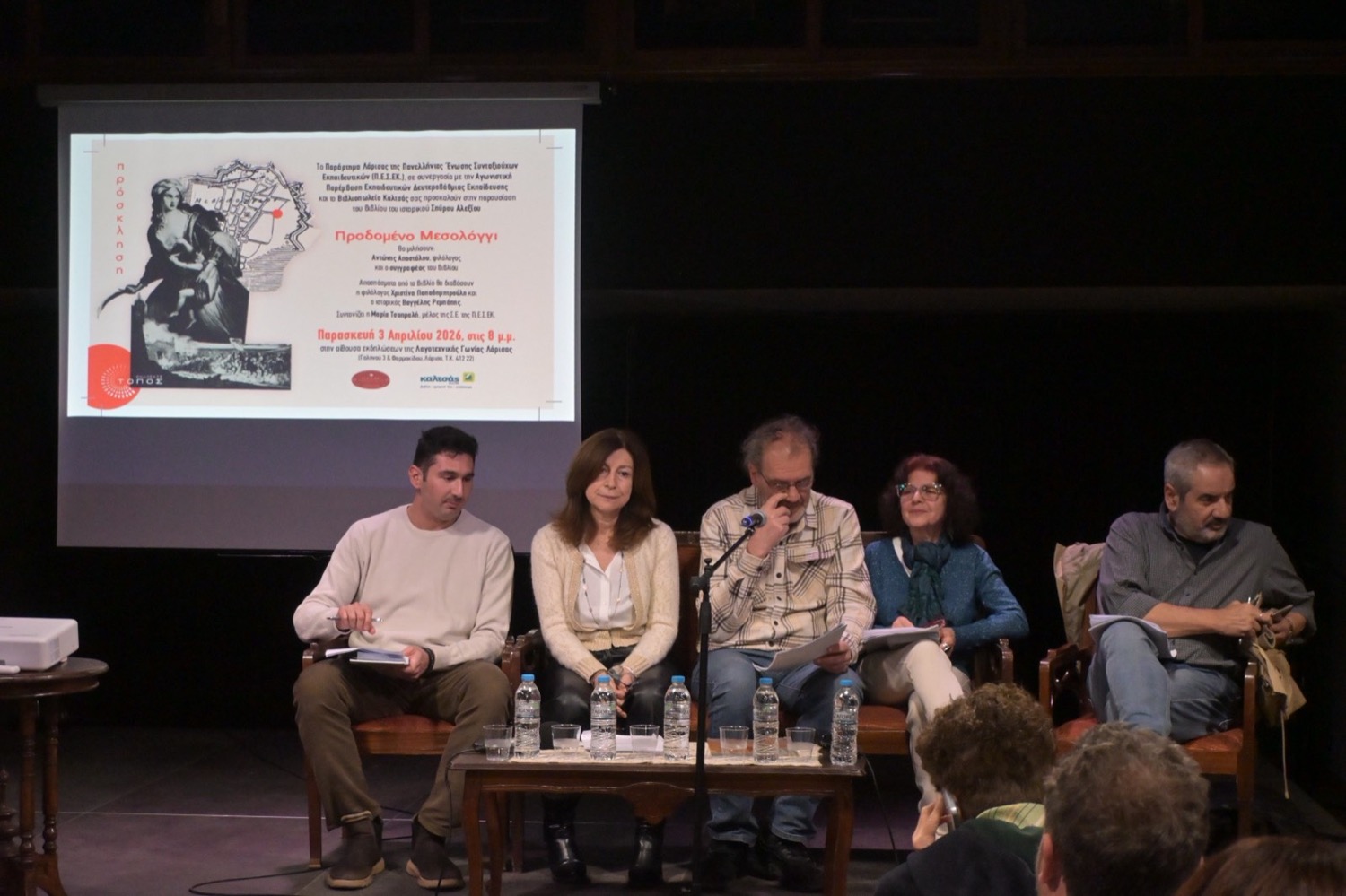 Σε μια ιδιαίτερα ενδιαφέρουσα βραδιά αφιερωμένη στην ιστορική μνήμη και την έρευνα, πραγματοποιήθηκε την Παρασκευή (03/04) στη Λογοτεχνική Γωνία Λάρισας η παρουσίαση του βιβλίου του ιστορικού Σπύρου Αλεξίου «Προδομένο Μεσολόγγι». Η εκδήλωση διοργανώθηκε από το Παράρτημα Λάρισας της Π.Ε.Σ.ΕΚ., σε συνεργασία με την Αγωνιστική Παρέμβαση Εκπαιδευτικών Δευτεροβάθμιας Εκπαίδευσης και το Βιβλιοπωλείο Καλτσάς, προσελκύοντας το ενδιαφέρον του κοινού που κατέκλυσε τον χώρο.
