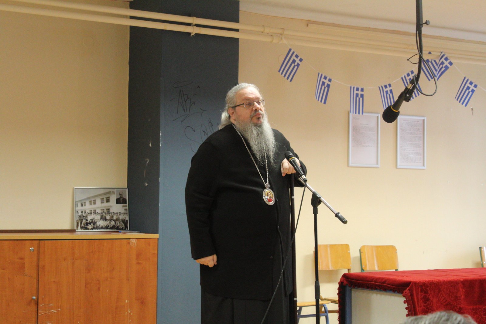 Στην ομιλία του ο Μητροπολίτης μίλησε για την ημέρα της Αναστάσεως επισημαίνοντας τη νίκη της ζωής επί του θανάτου, την ελπίδα και την πνευματική αναγέννηση. Χαρακτηριστικά ανέφερε ότι η Ανάσταση δεν είναι απλώς ένα ιστορικό γεγονός, αλλά η κατάργηση της δύναμης του θανάτου και του Άδη. Το ανέσπερο φως της Αναστάσεως καλείται να διαλύσει τα σκοτάδια της σύγχρονης απελπισίας, του πολέμου και της μοναξιάς. Η Ανάσταση αποτελεί την ύψιστη απόδειξη της αγάπης του Θεού για τον άνθρωπο και κάλεσε τους μαθητές/ριες να μετατρέψουν την Ανάσταση σε καθημερινό τρόπο ζωής, σε ουσιαστικό κατανυκτικό βίωμα και όχι σε μια καταναλωτική γιορτή.