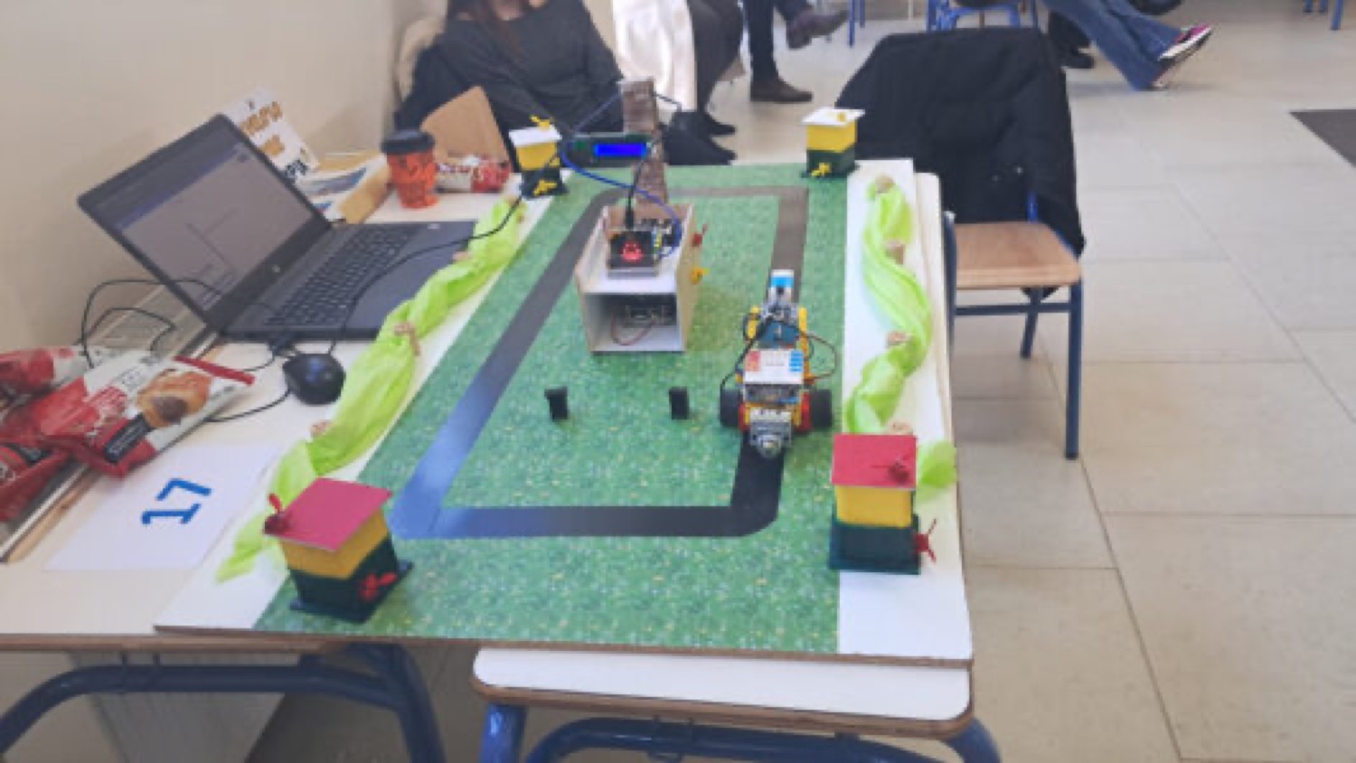 Την Κυριακή 29 Μαρτίου 2026 η ομάδα ρομποτικής του σχολείου μας πήρε μέρος στον Περιφερειακό Διαγωνισμό STEM και Εκπαιδευτικής Ρομποτικής που πραγματοποιήθηκε στη Καρδίτσα. Ο Οργανισμός Εκπαιδευτικής Ρομποτικής, Επιστήμης, Τεχνολογίας και Μαθηματικών (STEM Education) αποτελεί έναν φορέα που στόχο έχει την εισαγωγή της εκπαιδευτικής ρομποτικής και του STEM στην ελληνική εκπαίδευση. Η ομάδα μας αποτελείται από 6 μαθητές/τριες της Β΄Γυμνασίου και προσήλθε στον διαγωνισμό με το έργο “Bee-bot in Action!” στην Open Κατηγορία Γυμνασίου-Λυκείου-ΕΠΑΛ.
