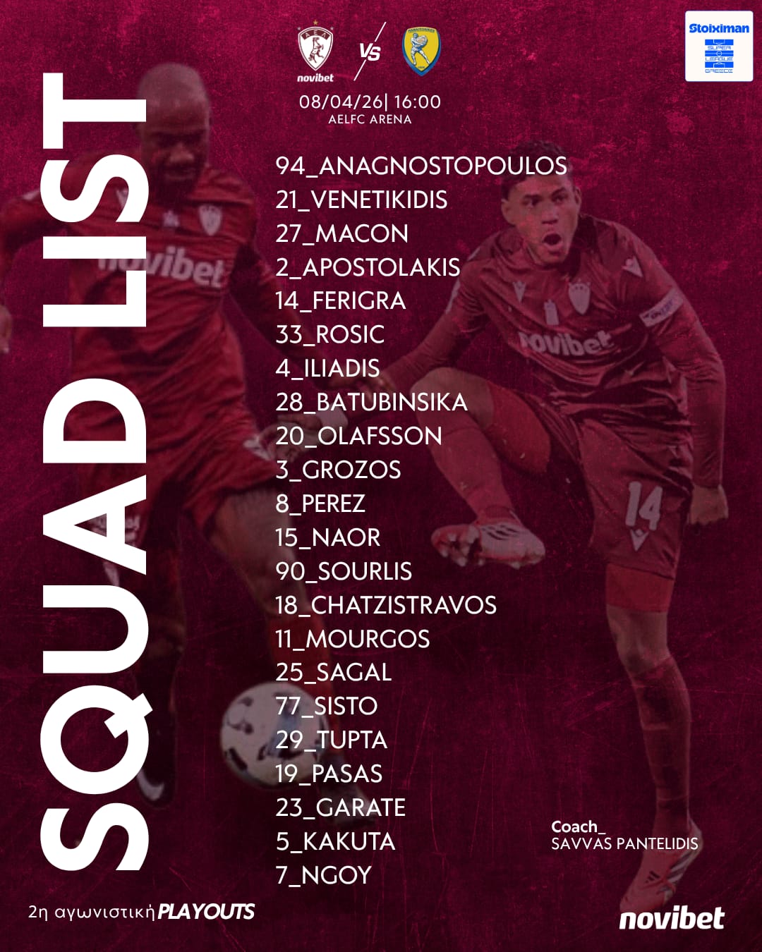 Η αποστολή της ΑΕΛ για τον αγώνα με τον Παναιτωλικό