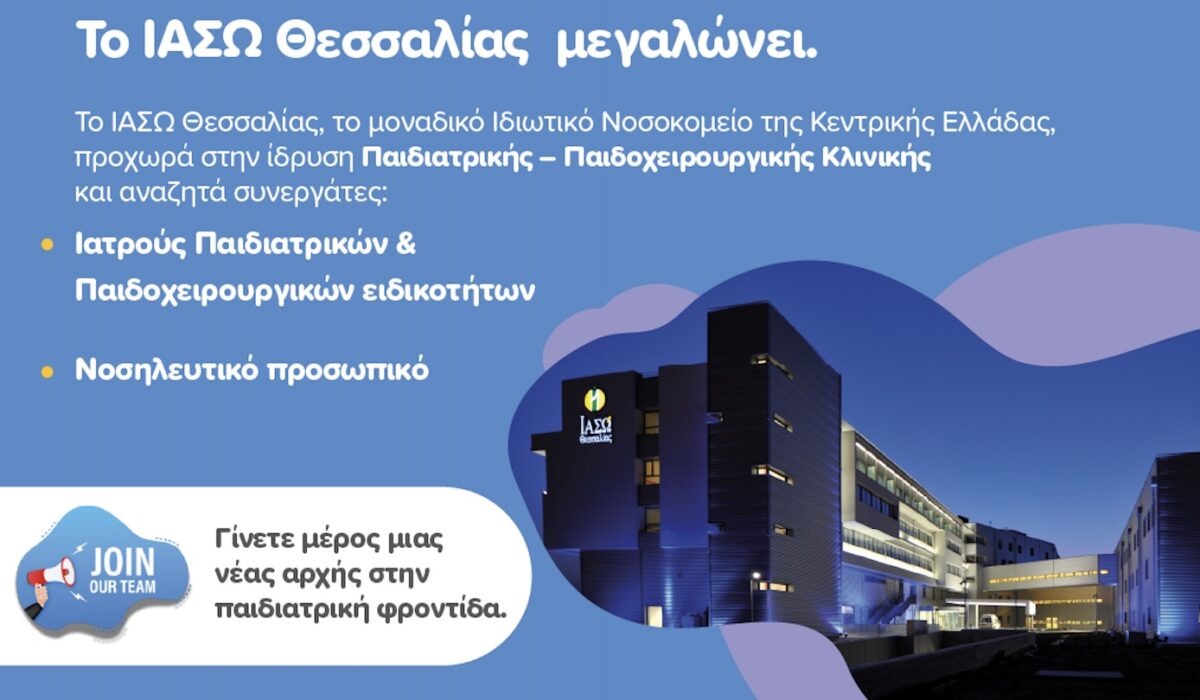 Το ΙΑΣΩ Θεσσαλίας μεγαλώνει και προχωρά στην ίδρυση Παιδιατρικής – Παιδοχειρουργικής Κλινικής.