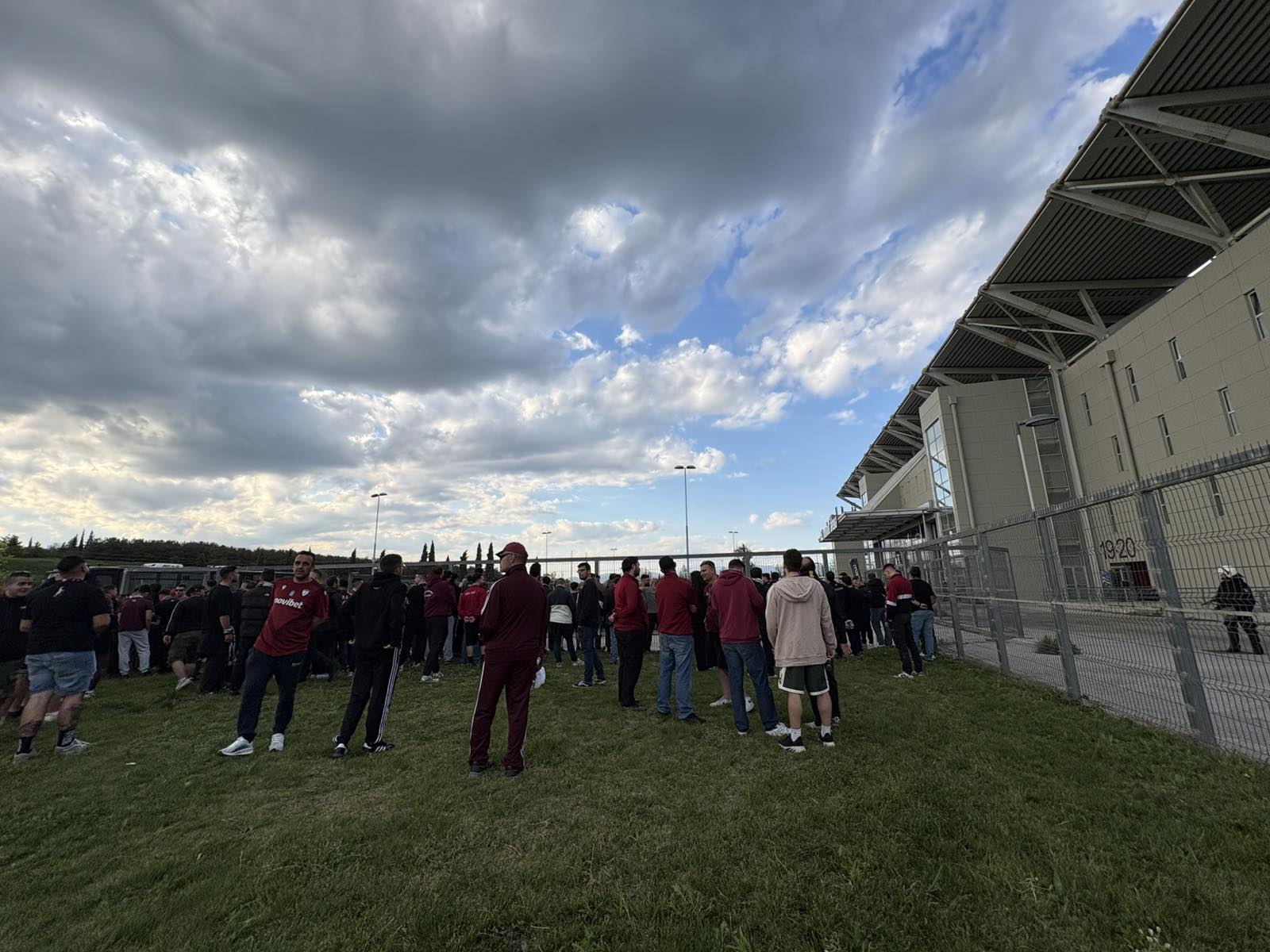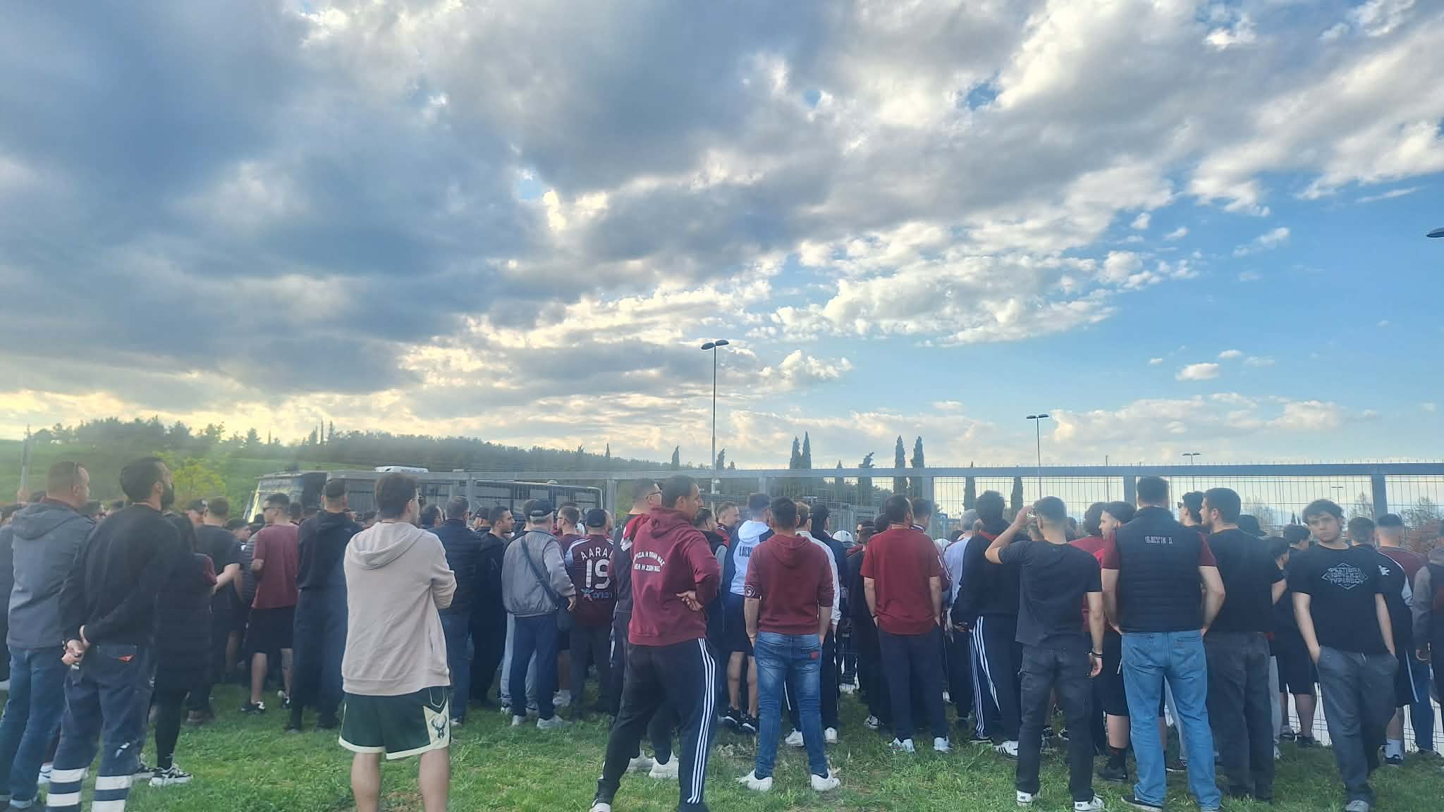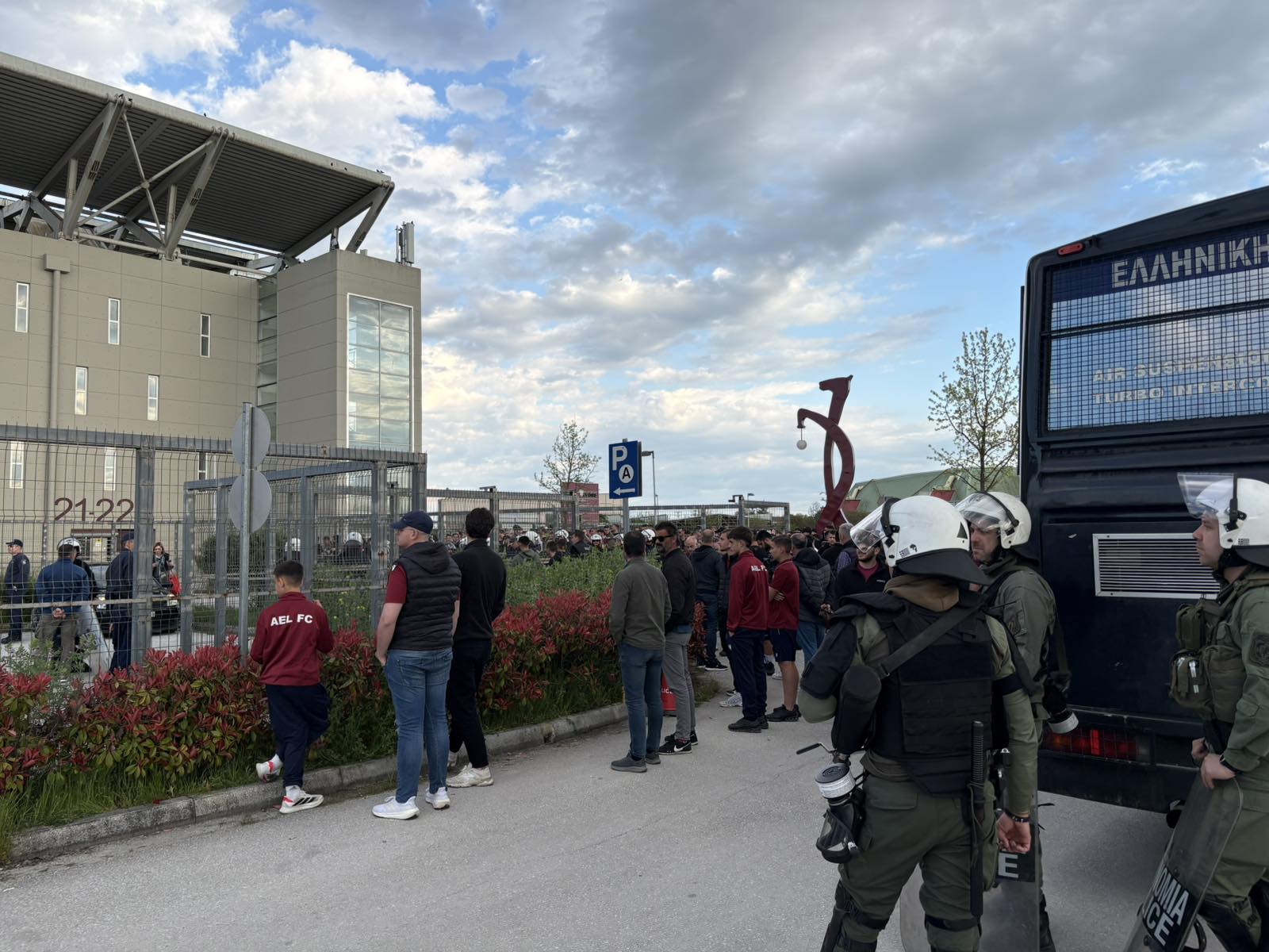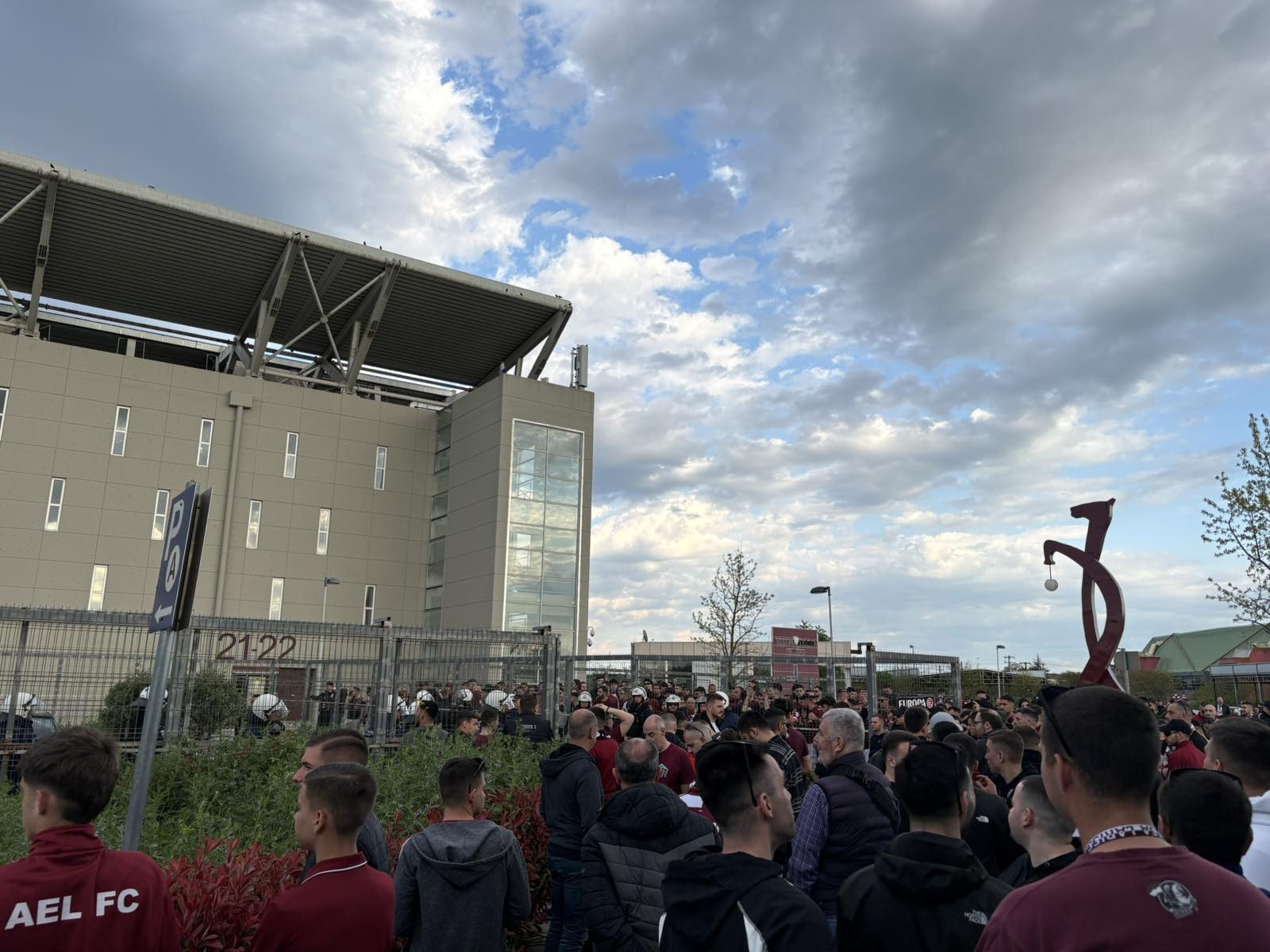 Πλήθος οπαδών της ΑΕΛ συγκεντρώθηκε έξω από το στο AEL FC ARENA προκειμένου να διαμαρτυρηθεί σε παίκτες και παράγοντες λόγω της ήττας από τον Παναιτωλικό νωρίτερα σε συνδυασμό με την κακή εμφάνιση.
