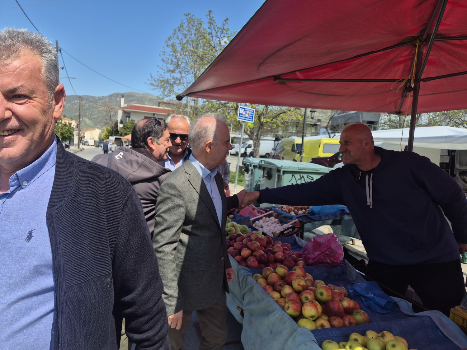 Κατά τη διάρκεια της επίσκεψής του, περιηγήθηκε στους πάγκους, συνομίλησε με παραγωγούς και εμπόρους, αντάλλαξε ευχές για Καλή Ανάσταση και Καλό Πάσχα με κατοίκους και επισκέπτες, ενώ δεν παρέλειψε να απολαύσει έναν σύντομο καφέ με συνεργάτες και δημότες σε τοπικό κατάστημα της περιοχής.