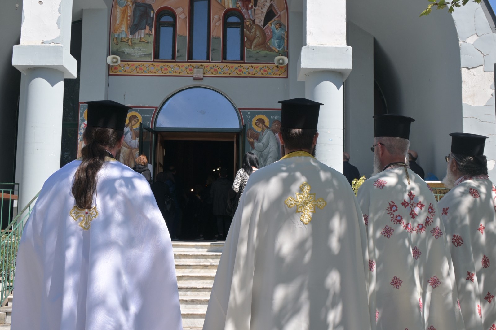 Πλήθος Λαρισαίων πιστών παρακολούθησε με ευλάβεια την Ακολουθία που τελέστηκε από τον Μητροπολίτη Λαρίσης και Τυρνάβου, Ιερώνυμο, καθώς και την περιφορά.
