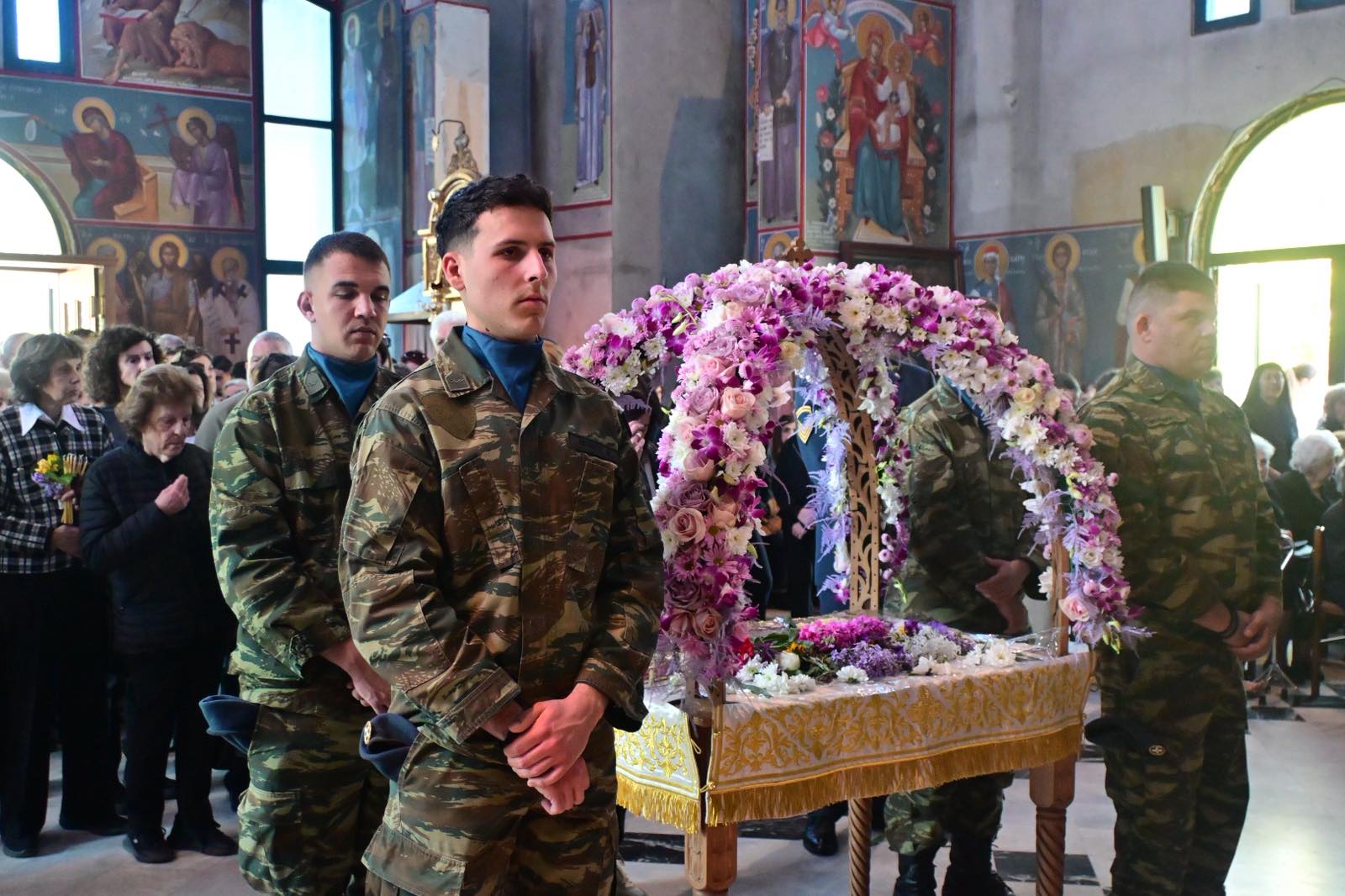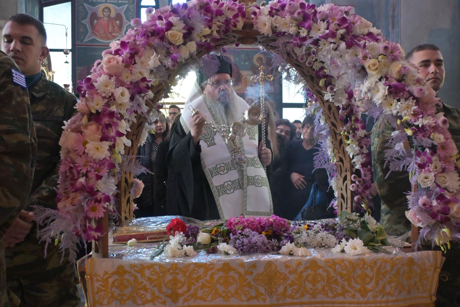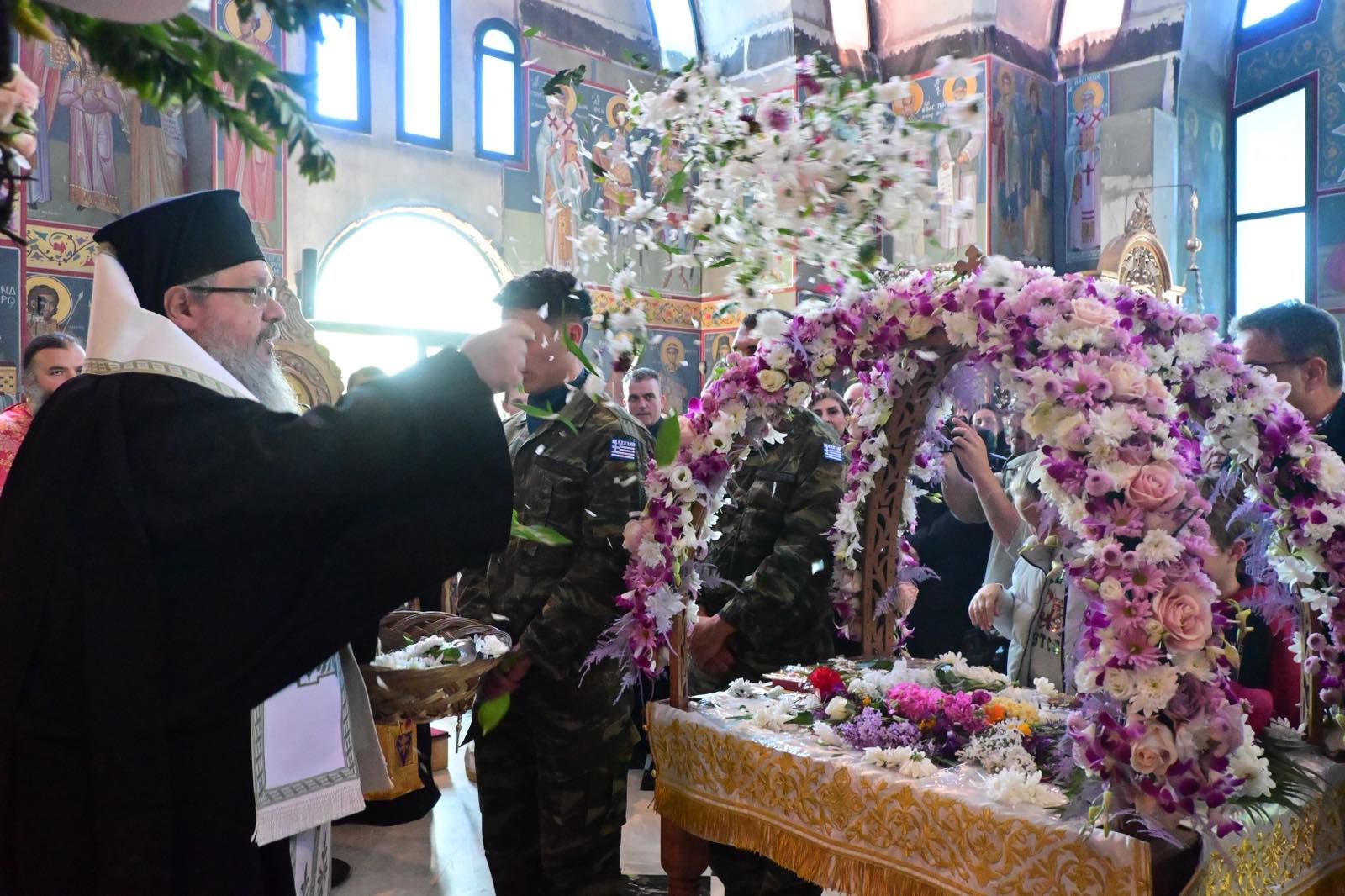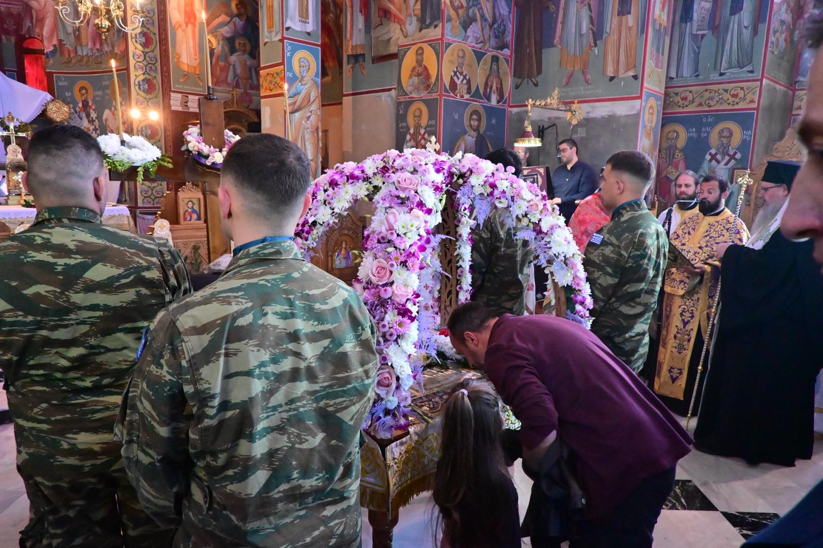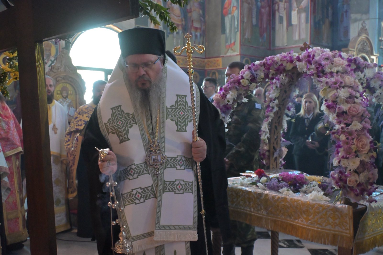 Πλήθος Λαρισαίων πιστών παρακολούθησε με ευλάβεια την Ακολουθία που τελέστηκε από τον Μητροπολίτη Λαρίσης και Τυρνάβου, Ιερώνυμο, καθώς και την περιφορά.