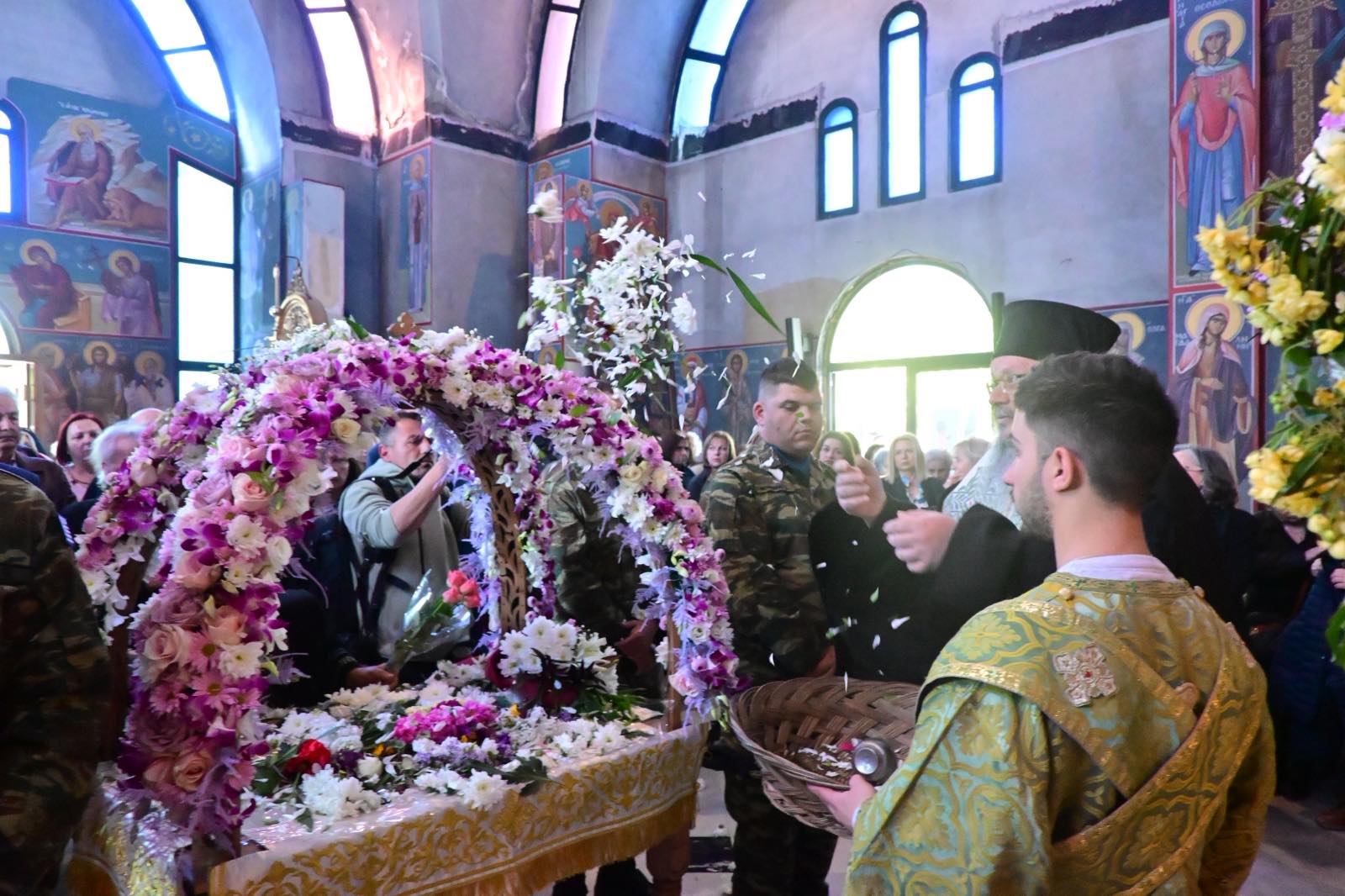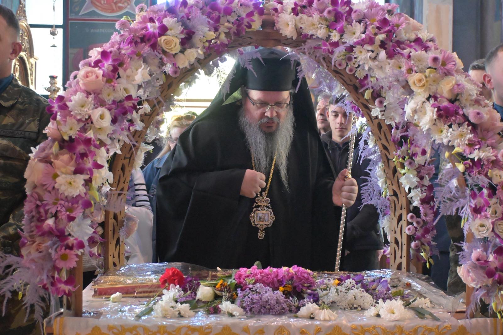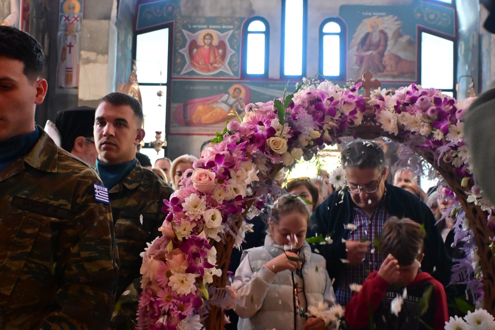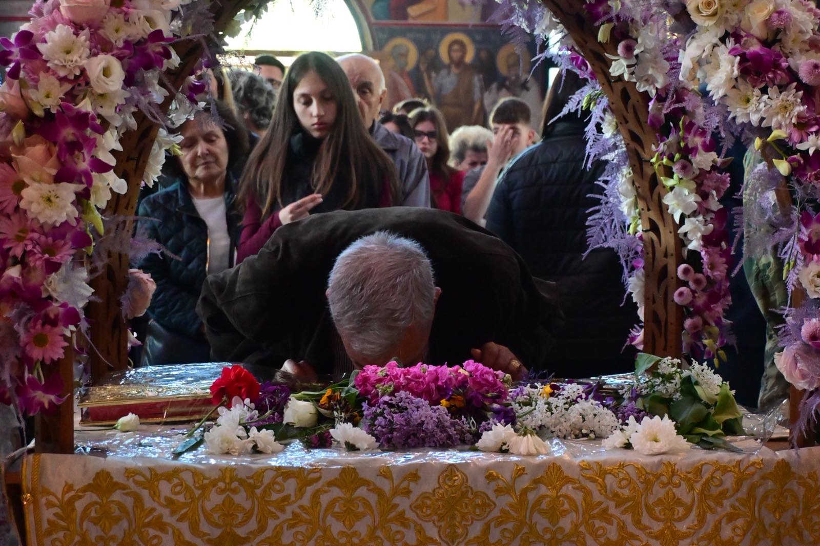 Πλήθος Λαρισαίων πιστών παρακολούθησε με ευλάβεια την Ακολουθία που τελέστηκε από τον Μητροπολίτη Λαρίσης και Τυρνάβου, Ιερώνυμο, καθώς και την περιφορά.