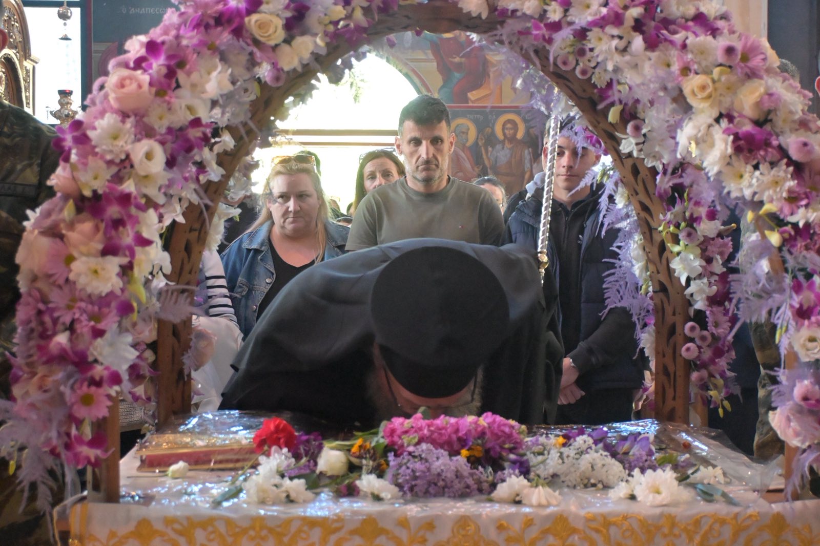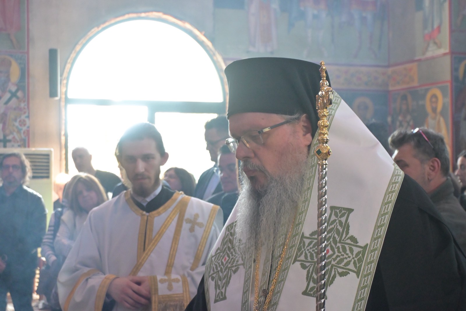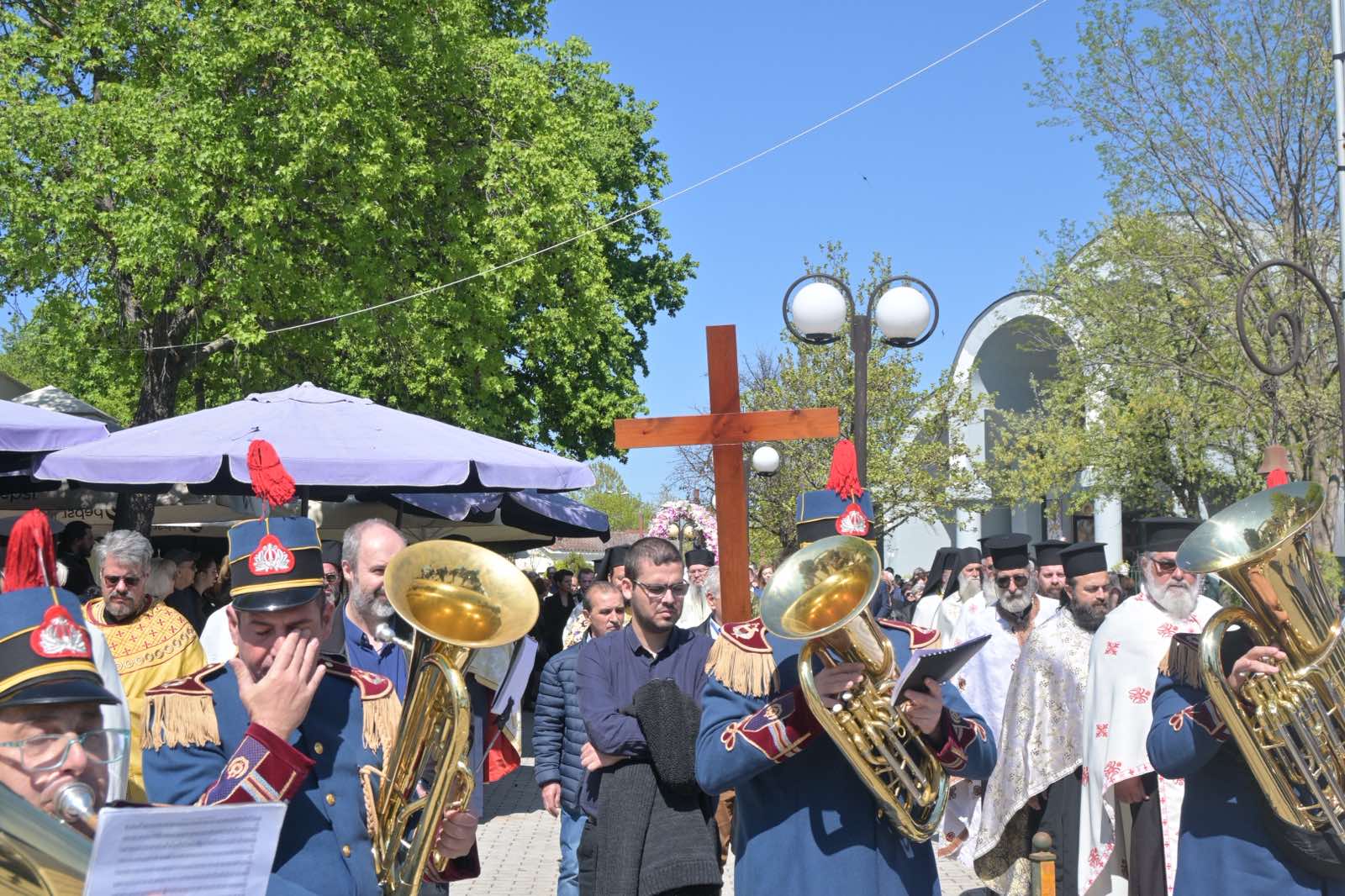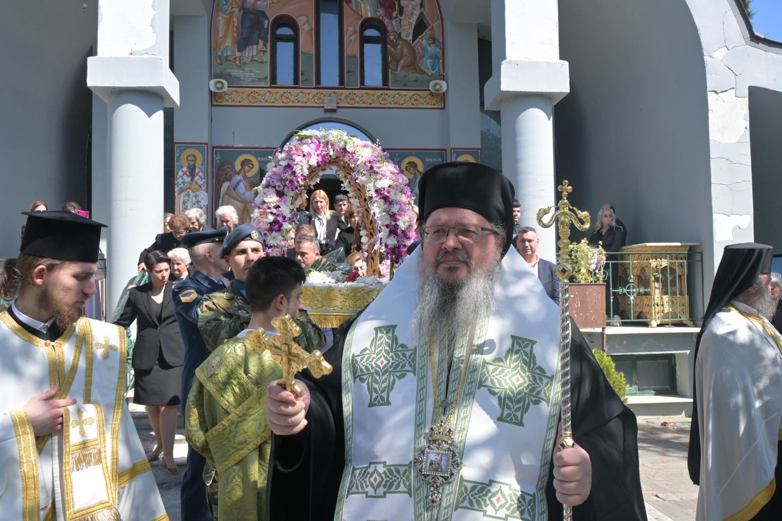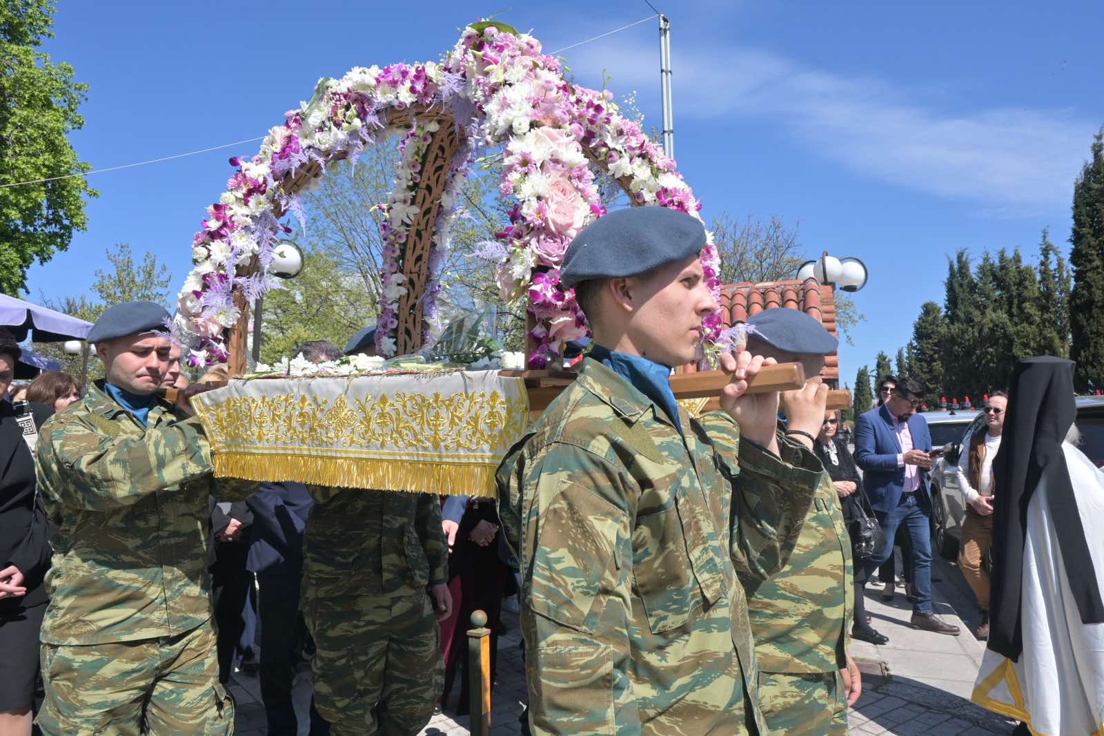 Πλήθος Λαρισαίων πιστών παρακολούθησε με ευλάβεια την Ακολουθία που τελέστηκε από τον Μητροπολίτη Λαρίσης και Τυρνάβου, Ιερώνυμο, καθώς και την περιφορά.
