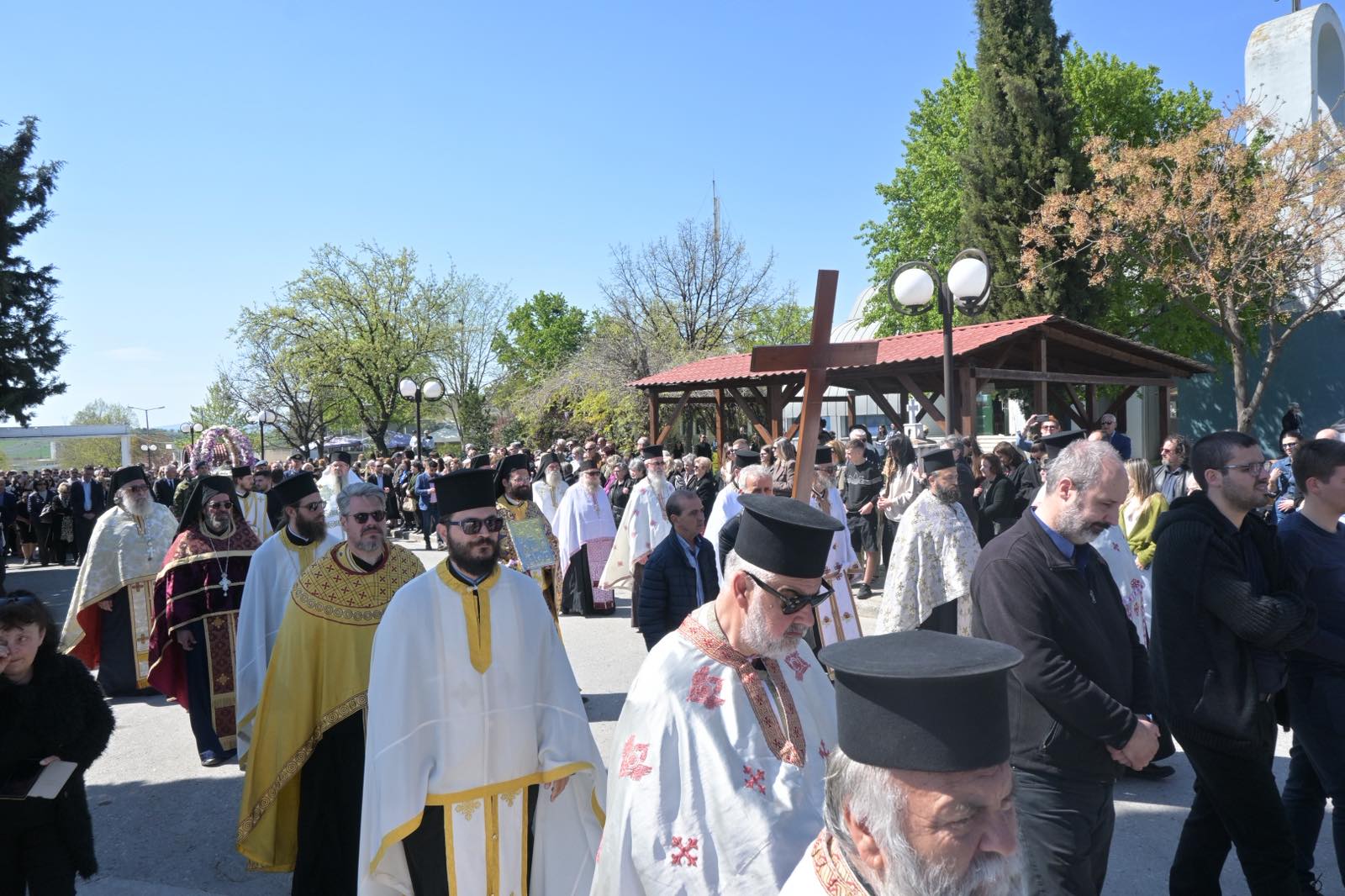 Τελέστηκε η Ακολουθία του Επιταφίου στο Νέο Κοιμητήριο Λάρισας και στον Ιερό Κοιμητήριο Ναό Αναστάσεως του Λαζάρου, σήμερα Μεγάλη Παρασκευή το μεσημέρι.