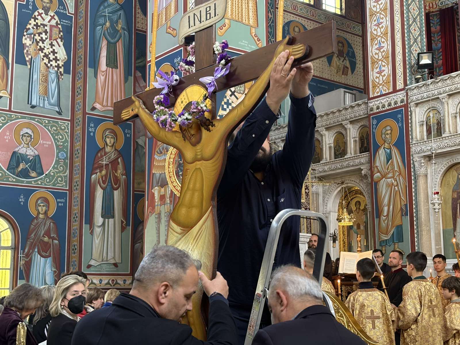 Πλήθος Λαρισαίων πιστών με ευλάβεια παρακολούθησαν τον εσπερινό της Αποκαθήλωσης.