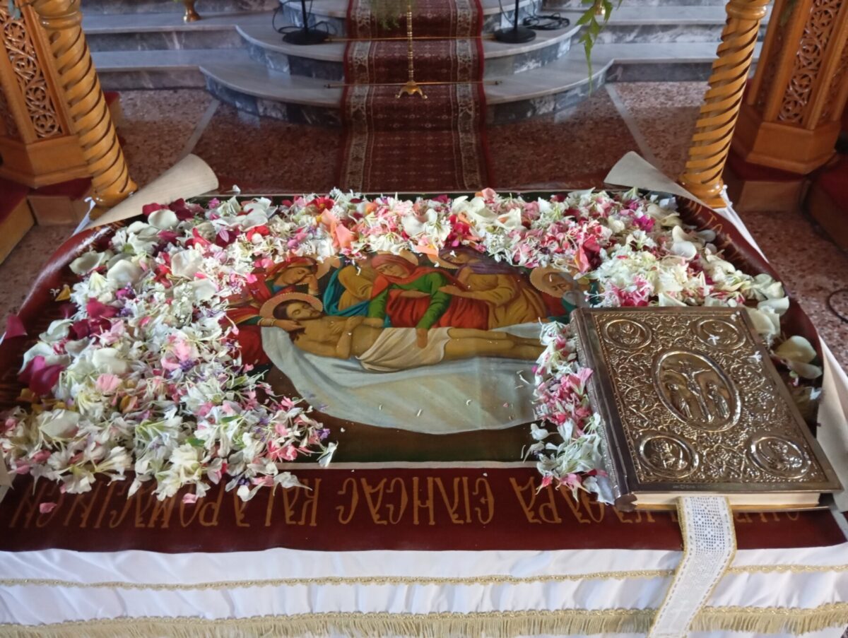Στολίστηκε με ευλάβεια και ο επιτάφιος Ιερού ναού γενεθλίων της Θεοτόκου Κοιλαδας στη Λάρισα