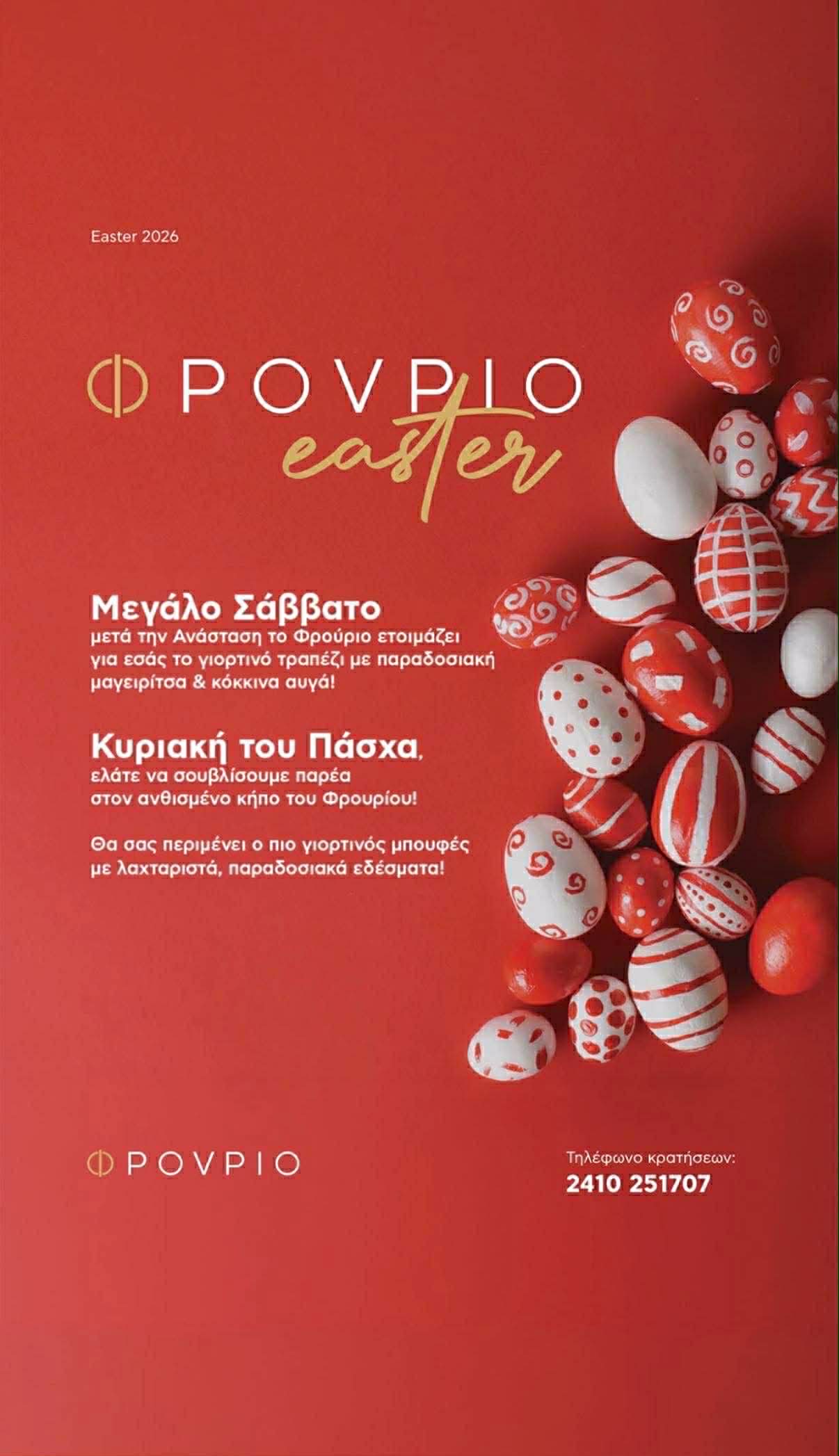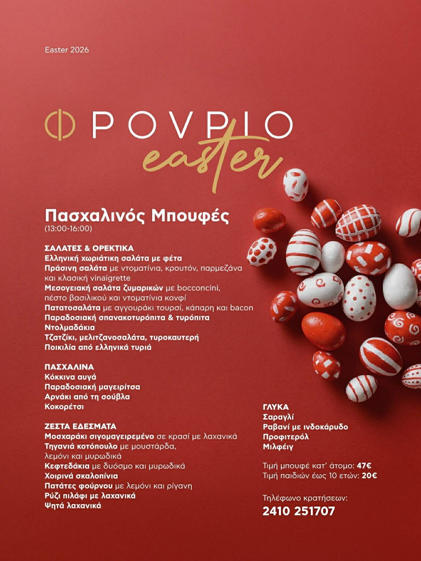 Το βράδυ του Μεγάλου Σαββάτου, μετά την Ανάσταση, ο χώρος σας υποδέχεται με μια ζεστή, παραδοσιακή μαγειρίτσα και βαμμένα κόκκινα αυγά, δημιουργώντας μια οικεία και γιορτινή ατμόσφαιρα.