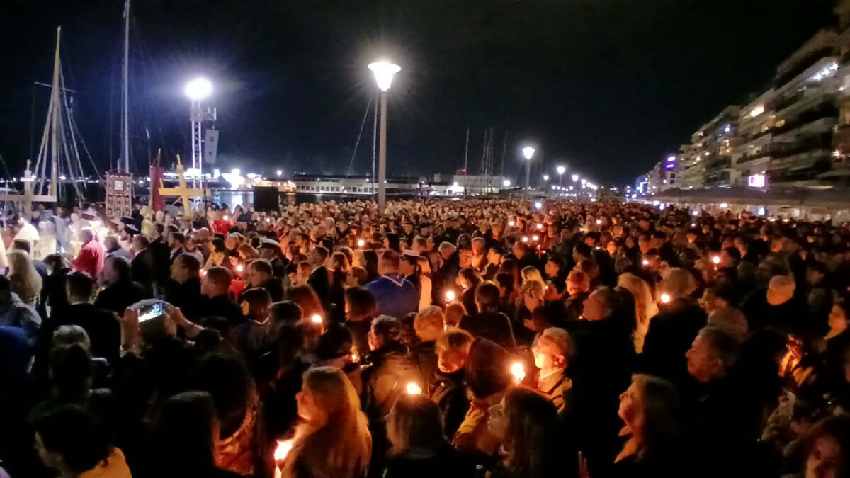 Ρίγη συγκίνησης στην παραλία του Βόλου από τη συνάντηση των τεσσάρων επιταφίων – Δείτε εικόνες