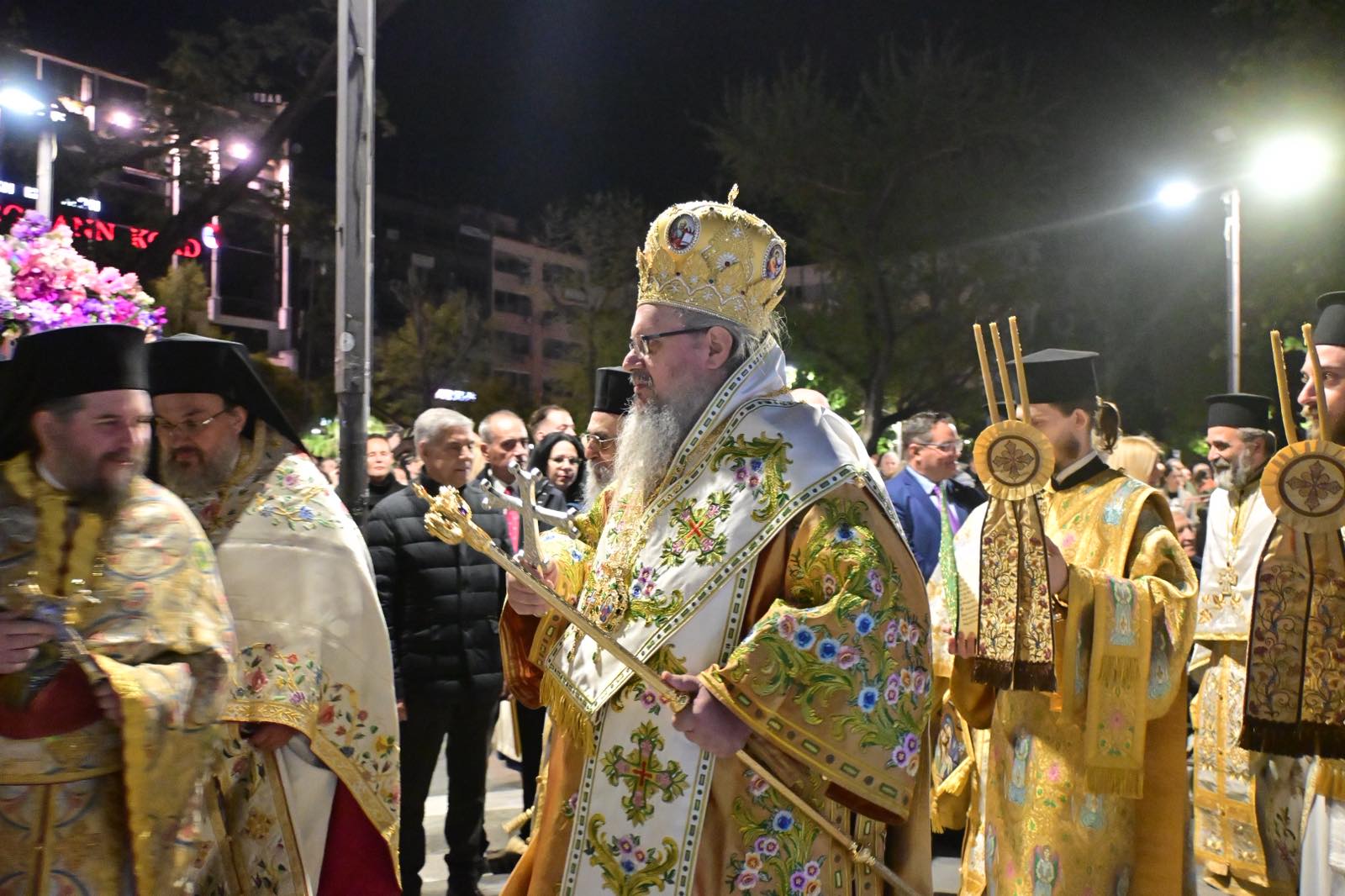 Αφότου οι Επιτάφιοι και οι πιστοί συναντήθηκαν στην Κεντρική πλατεία, ο Μητροπολίτης Λαρίσης και Τυρνάβου, κ.κ. Ιερώνυμος, έστειλε το δικό του μήνυμα, το οποίο αν μη τι άλλο ήταν ελπιδοφόρο, καθώς ολοκληρώνοντας τον λόγο του ανέφερε, τα εξής: «Έχουμε ζήσει τις συνέπειες μιας πανδημίας, έχουμε ζήσει τις συνέπειες μιας πλημμύρας, έχουμε ζήσει τις συνέπειες της ασθένειας των προβάτων, έχουμε ζήσει δύσκολα λόγω των οικονομικών σκαμπανεβασμάτων και όλων αυτών τα οποία πολλές φορές επηρεάζουν δύσκολα τη ζωή μας. Όμως γι’ αυτό είναι η Εκκλησία, για να δίνει ελπίδα και δύναμη και για να κατανοούμε πώς μπορούμε όλα αυτά να τα υπερβαίνουμε μέσα από τη γλυκιά ελπίδα αυτών των στιγμών, της κοινής προσευχής, της κοινής λατρείας, του κοινού προσώπου του Χριστού που έρχεται για να μας συνενώσει».