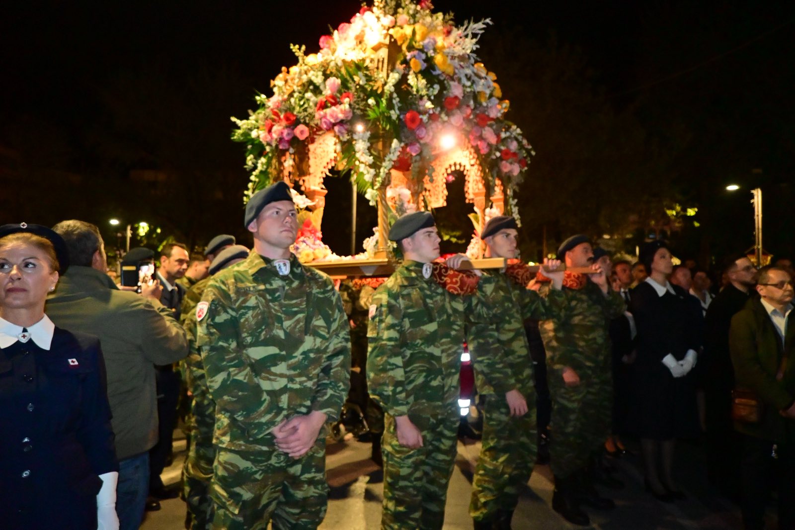 Από νωρίς το απόγευμα, οι Ιεροί Ναοί στολίστηκαν με άνθη, ενώ οι καμπάνες ηχούσαν πένθιμα, δημιουργώντας μια ατμόσφαιρα βαθιάς συγκίνησης και περισυλλογής. Καθώς έπεσε το σκοτάδι, οι Επιτάφιοι εξήλθαν από τις εκκλησίες, συνοδευόμενοι από δεκάδες πολίτες που κρατούσαν κεριά.