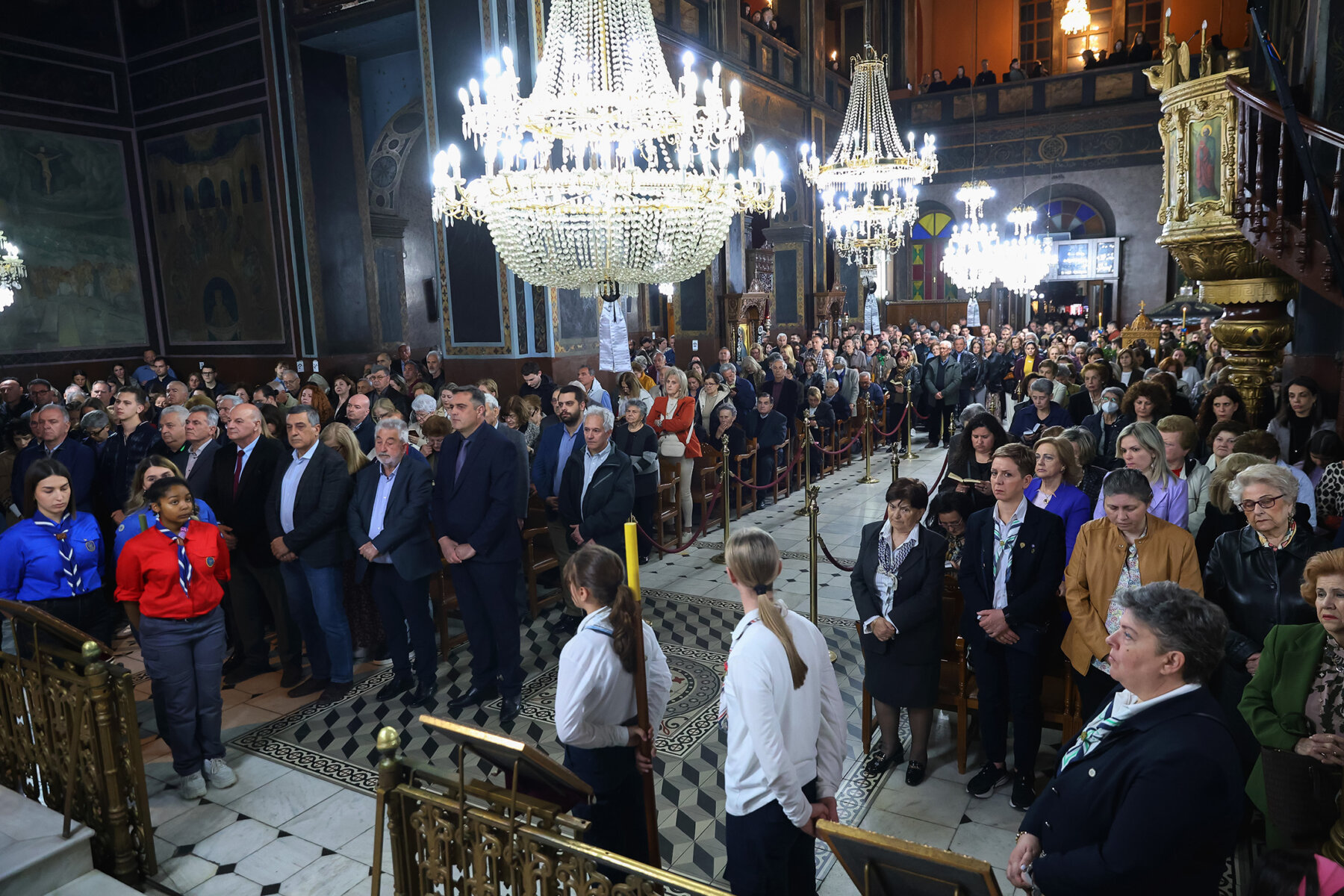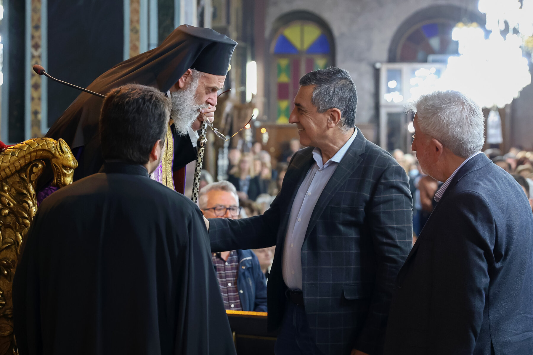 Μετά το πέρας της Ακολουθίας, ο κ. Κουρέτας αντάλλαξε ευχές με τους πολίτες της Καρδίτσας, τονίζοντας το βαθύτερο νόημα της ημέρας:
