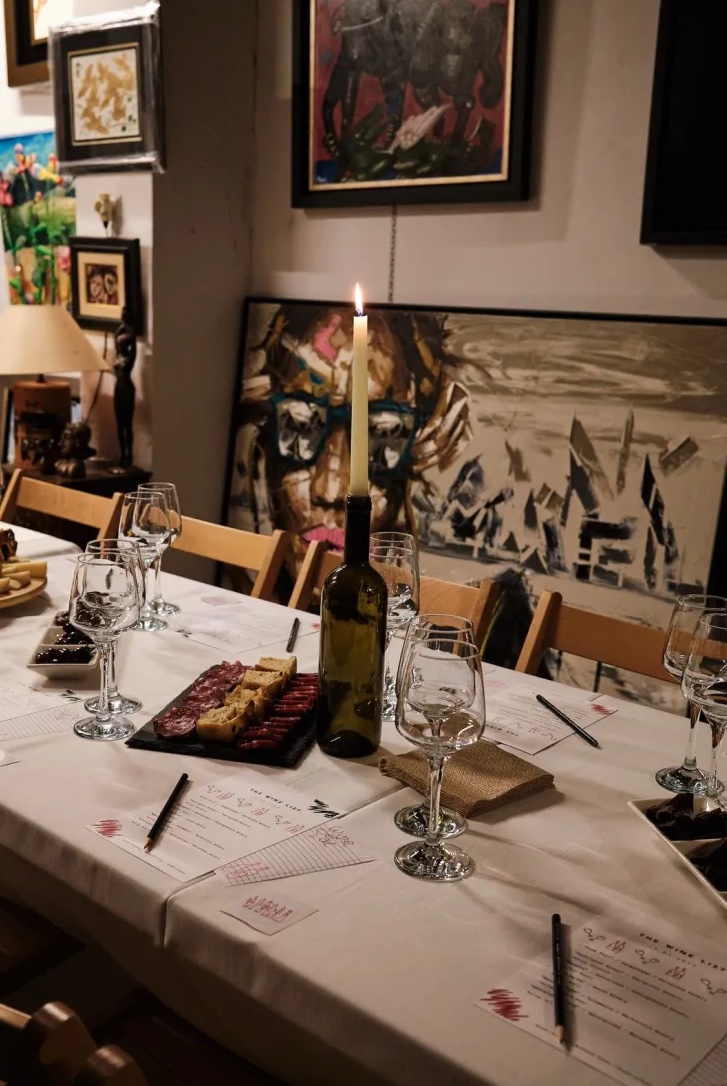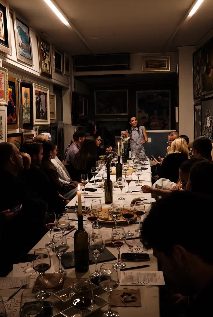 Τα πρώτα δύο events έγιναν σε γκαλερί στο Μοναστηράκι και στέφθηκαν με μεγάλη επιτυχία. Βρεθήκαμε σε ένα από αυτά και μπορέσαμε να το ζήσουμε από κοντά: κατά τη διάρκεια του event, δοκιμάσαμε έξι διαφορετικές ετικέτες κρασιού, επιλεγμένες από τη sommelier, συνοδευόμενες από εκλεκτά τυριά και αλλαντικά. Μέσα στον χώρο της γκαλερί, περιηγηθήκαμε σε έργα τέχνης και συζητήσαμε για την έμπνευση πίσω από το κάθε ένα, με αφορμή τα αρώματα και τις ιστορίες των κρασιών. Το τραπέζι έγινε σημείο συνάντησης – ανταλλάξαμε σκέψεις, γελάσαμε, και νιώσαμε πως, πέρα από πολλές καινούργιες γνώσεις για τον οίνο, ζήσαμε και μια εμπειρία ουσιαστικής επαφής.