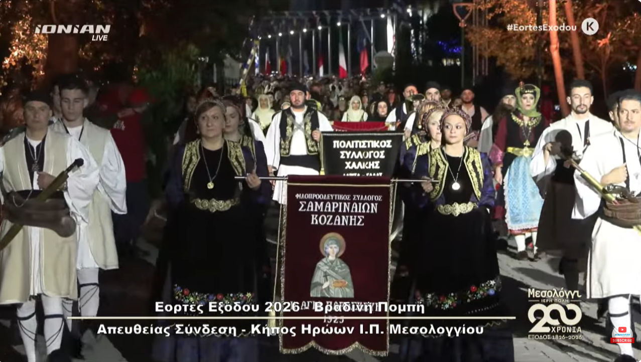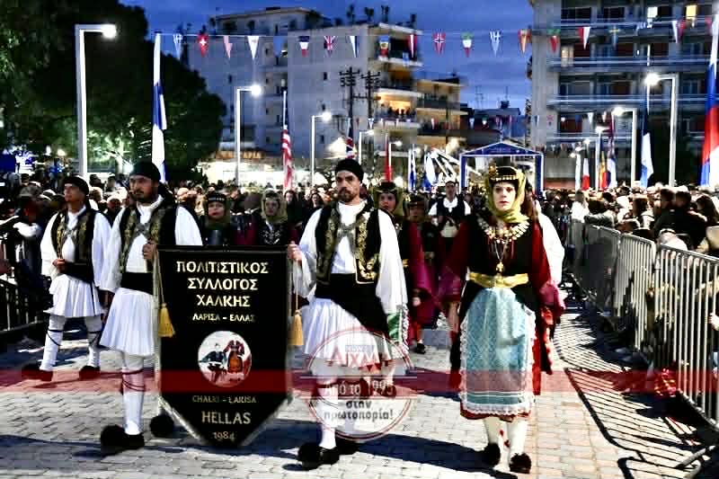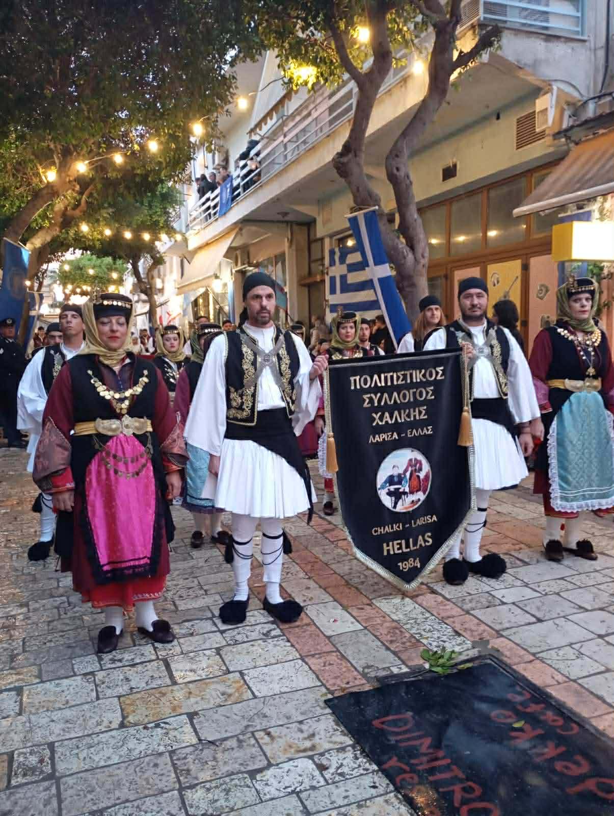 Παρήλασαν το βράδυ του Σαββάτου του Λαζάρου από τον Άγιο Σπυρίδωνα μέχρι τον Κήπο των Ηρώων. 12 άτομα από τη Χάλκη Λάρισας. Με τις φορεσιές τις καλές και τα κοσμήματα τα παλιά. Βίωσαν κατάνυξη, συγκίνηση, υπερηφάνεια. Βίωσαν την τιμή που τους έγινε. Βιώσαν την Ιστορία. Το μέγεθος της Ιστορίας που κουβαλάμε. Το τίποτα του καθενός σε αυτό τον κόσμο τον μικρό, τον μέγα. Έτσι ένιωσαν και την Ελλάδα. Και την Ιερή Πόλη. Και εκείνους, τους Ελεύθερους Πολιορκημένους.