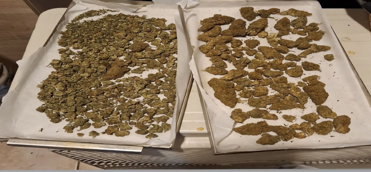 Η έρευνα που ακολούθησε στο σπίτι του αποκάλυψε μια πλήρως οργανωμένη εικόνα αποθήκευσης και επεξεργασίας ναρκωτικών. Σε διαφορετικά σημεία της οικίας εντοπίστηκαν και κατασχέθηκαν 757,6 γραμμάρια κατεργασμένης κάνναβης τύπου «σοκολάτα», 858,7 γραμμάρια ακατέργαστης κάνναβης, καθώς και τρία μπισκότα κάνναβης συνολικού βάρους 75,4 γραμμαρίων.