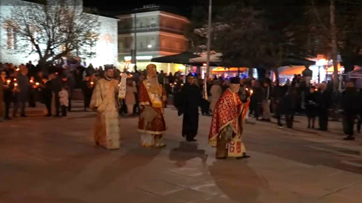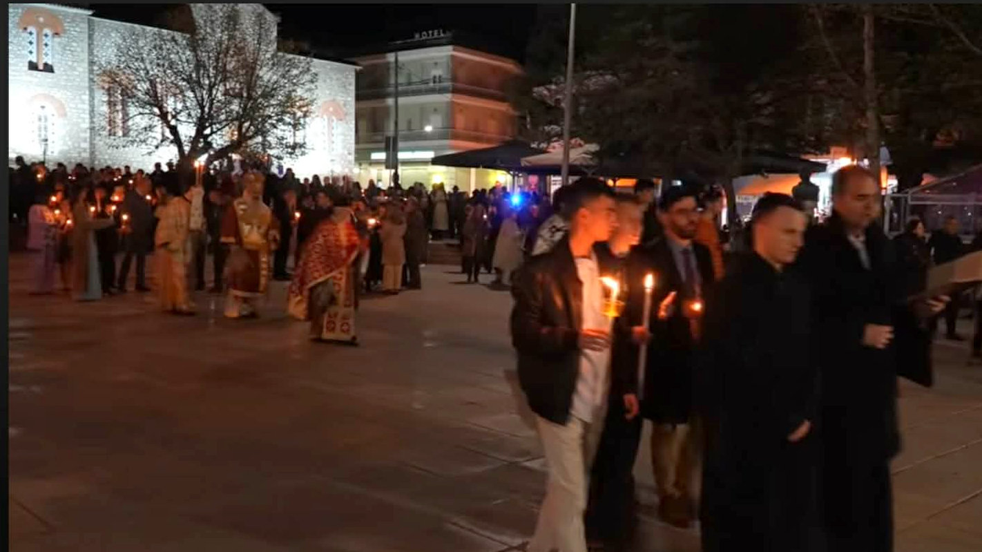 Η ακολουθία τελέστηκε από τον Σεβασμιώτατο Μητροπολίτη Ελασσόνας κ. Χαρίτωνα, ο οποίος έψαλλε το «Χριστός Ανέστη» στην κεντρική πλατεία της πόλης, παρουσία των τοπικών αρχών και πλήθους πιστών.