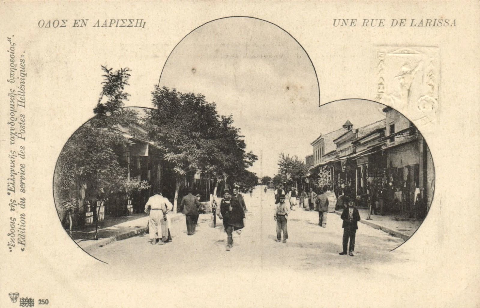 Σπάνια καρτ ποστάλ με τον τίτλο «Οδός εν Λαρίσση – Une rue de Larissa», που μας μεταφέρει στη Λάρισα των αρχών του 20ού αιώνα.