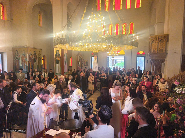Μια υπέροχη «συμφωνία» αγάπης γράφτηκε χθες στον Ιερό Ναό Αγίου Γεδεών Τυρνάβου. Ο μαέστρος της Φιλαρμονικής, Θέμης, και η εκλεκτή της καρδιάς του, Μαρία, ενώθηκαν με τα δεσμά του γάμου, ενώ αμέσως μετά βάπτισαν τον γιο τους, Νικόλαο!