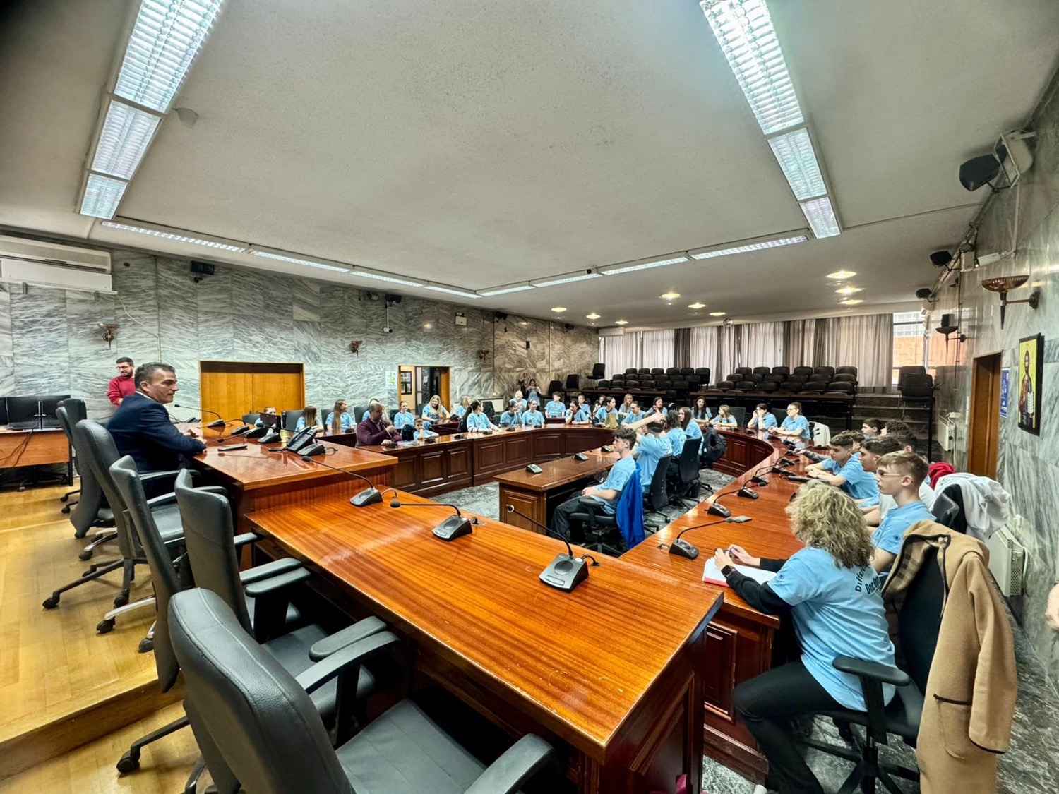 Συγκεκριμένα, 21 αθλητές από το Σόνεμπεργκ της Γερμανίας ηλικίας 13-17 ετών βρέθηκαν πίσω από τα έδρανα του Δημοτικού Συμβουλίου στο πλαίσιο σειράς επισκέψεων που πραγματοποιούν στην περιοχή, μαζί με αθλητές από τα τμήματα μπάσκετ και βόλεϊ του ΑΟ Φοίβος.