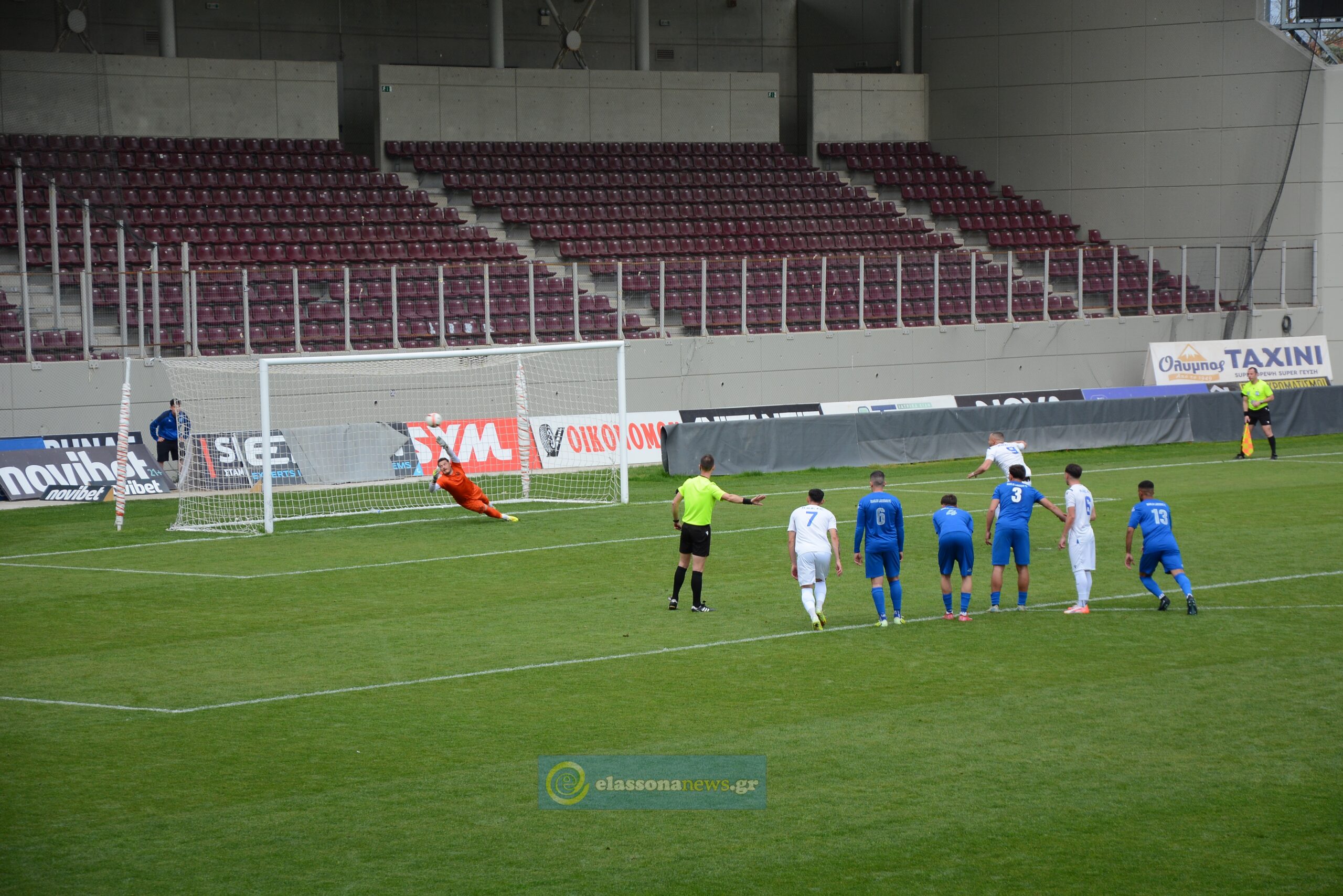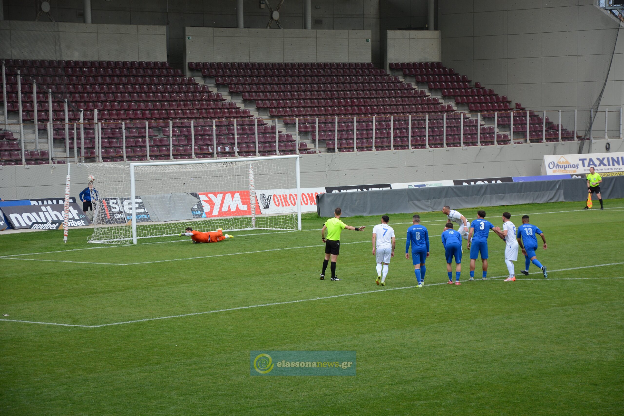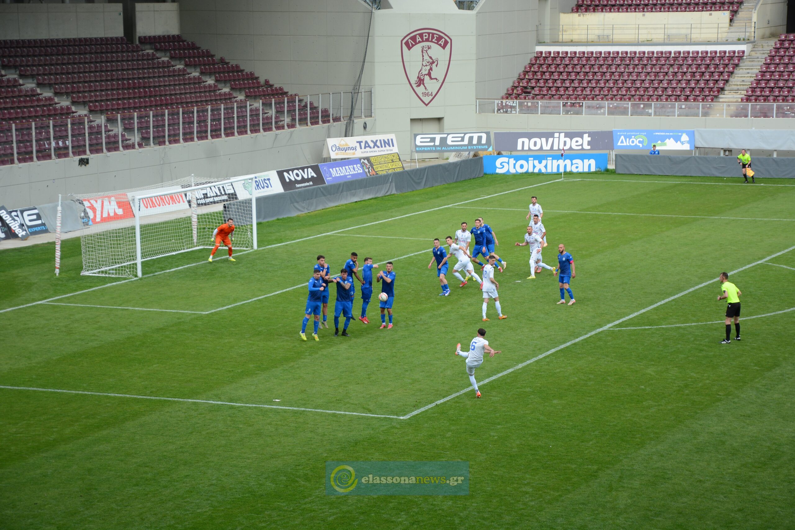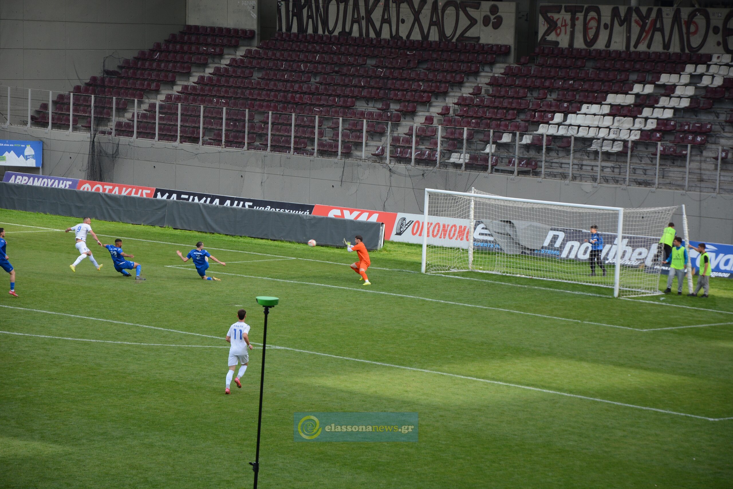 Η ομάδα της Λάρισας προηγήθηκε στο 16′ με σουτ του Βασίλη Κατσαμάγκα. Στο 26′ μετά από ανατροπή του Κουκούλη στη μικρή περιοχή ο ΠΟΕ κέρδισε πέναλτυ και το εκτέλεσε ευστοχα ο Γκουντρουμπής, ενώ στο 54′ ο ίδιος με εξαιρετική εκτέλεση έγραψε το 1-2 για την ομάδα της Ελασσόνας.