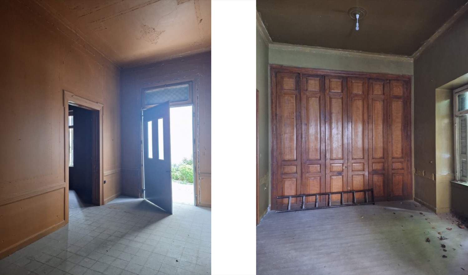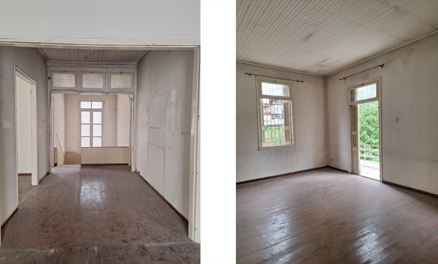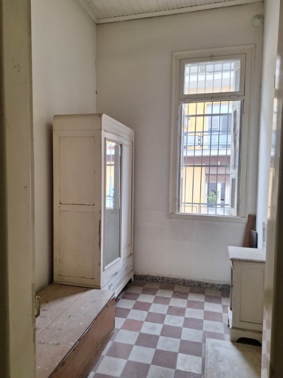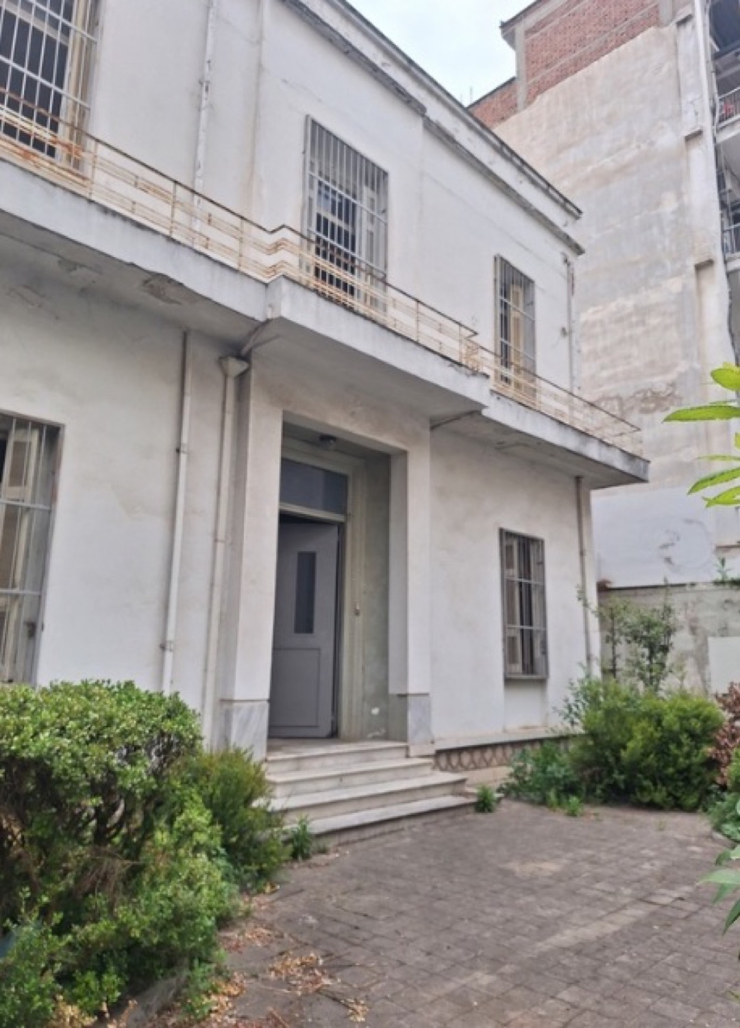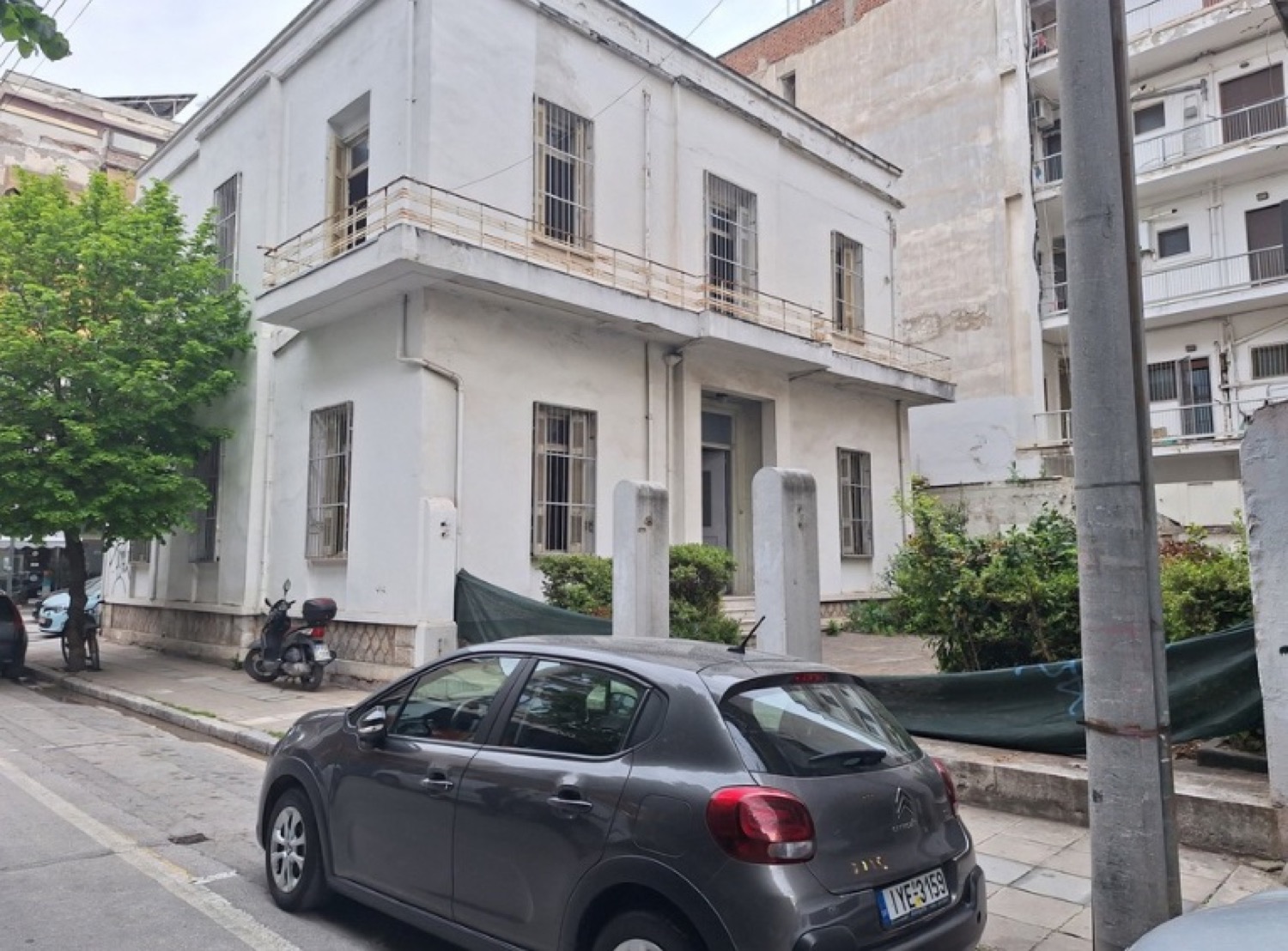 Ο εσωτερικός χώρος του κτιρίου ήταν κενός και αντί της περιμετρικής περίφραξης στην είσοδο του οικοπέδου από την οδό Παπακυριαζή υπήρχε τοποθετημένο πλαστικό πλέγμα.