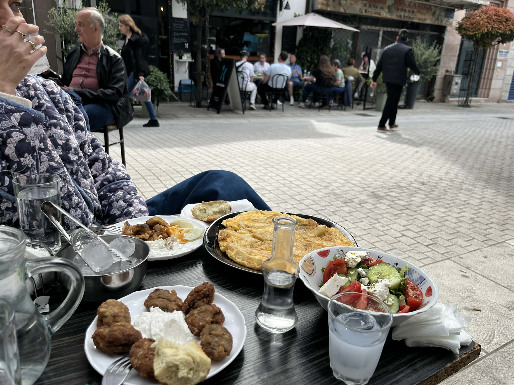 Περιττό να αναφέρω ότι στου Μούμου πίνες τσίπουρα όπως παλιά. Σε καραφάκι με γλυκάνισο. «Οι μικρότεροι τώρα θέλουν χωρίς, τους δίνουμε, αλλά άλλο πράγμα το τσίπουρο με γλυκάνισο». Μαζί με καραφάκι έρχεται ο μεζές. Στην πραγματικότητα είναι πολλά πιάτα. Σπεσιαλιτέ η ομελέτα. «Έμαθα να την πετάω στον αέρα» μου λέει και γελάει. Και τα κεφτεδάκια.
