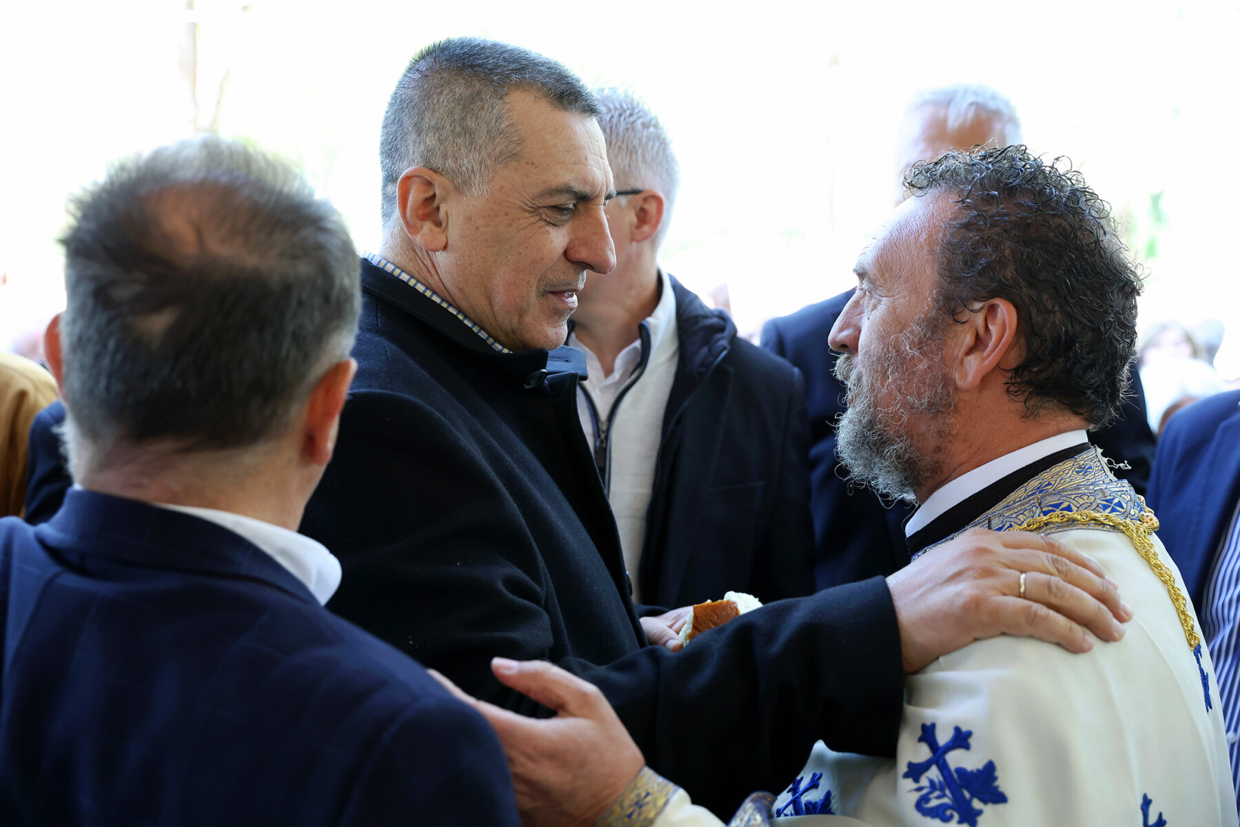 Μετά τη λειτουργία, ο Περιφερειάρχης επισκέφθηκε κτηνοτροφική μονάδα της περιοχής που έχει πληγεί από ευλογιά, συνομιλώντας με εκπροσώπους των κτηνοτρόφων.