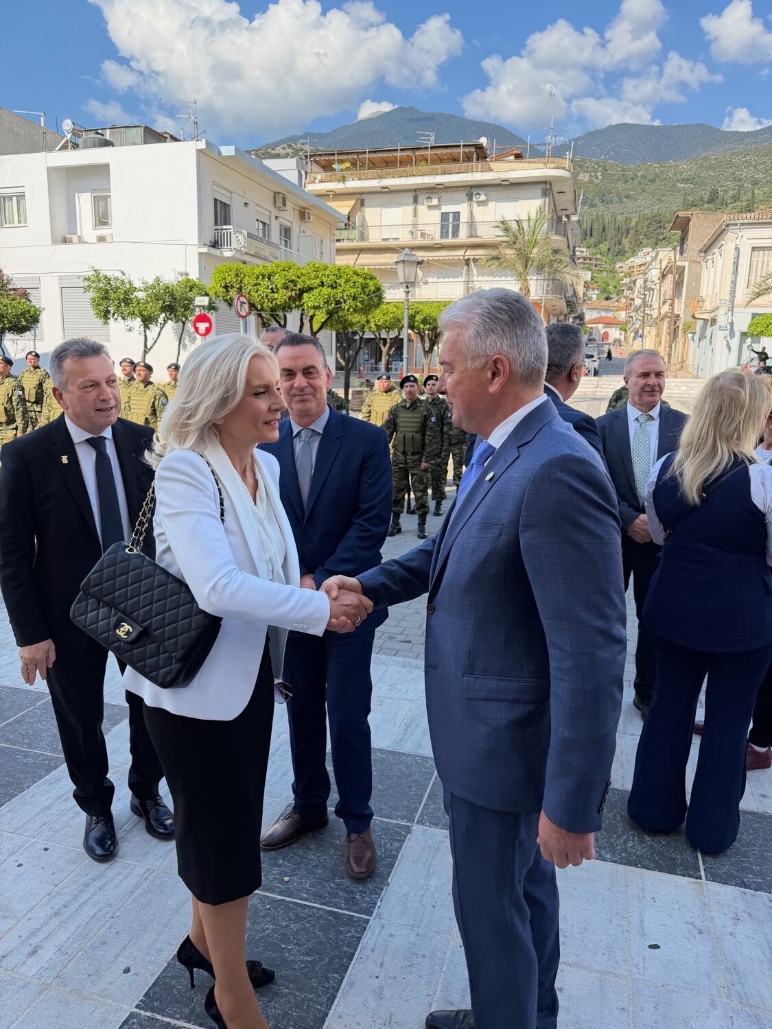 Η Γενική Γραμματέας παρακολούθησε την παρέλαση στην πόλη της Άμφισσας και μετά το πέρας αυτής, παρέστη στα αποκαλυπτήρια του Μνημείου Πεσόντων Αεροπόρων Νομού Φωκίδας, στην πλατεία Ικάρων, τα οποία πραγματοποιήθηκαν από τον Πρόεδρο της Δημοκρατίας, παρουσία του Αρχηγού Γενικού Επιτελείου Αεροπορίας Αντιπτεράρχου (Ι) κ. Δημοσθένη Γρηγοριάδη.