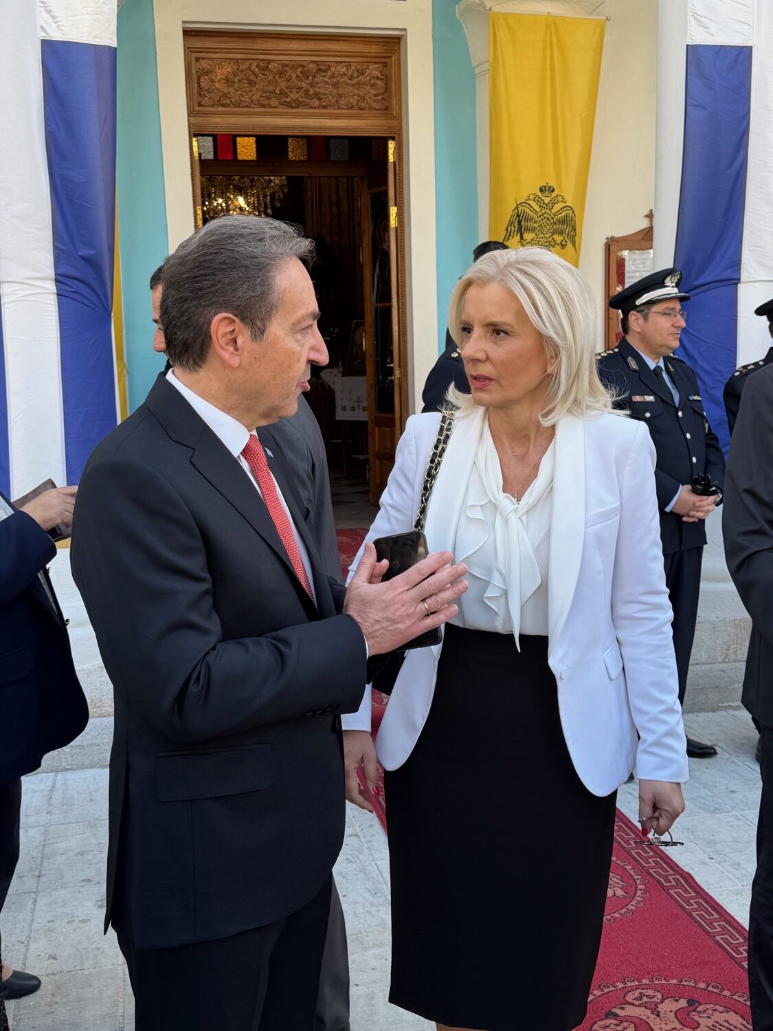 Η κα Καραλαριώτου παρακολούθησε το πρωί τη δοξολογία στον Ιερό Ναό του Ευαγγελισμού της Θεοτόκου, προεξάρχοντος του Σεβασμιωτάτου Μητροπολίτη Φωκίδας κ. Θεόκτιστου, και στη συνέχεια παρέστη στην τελετή που πραγματοποιήθηκε στον ανδριάντα του Επισκόπου Σαλώνων Ησαΐα.